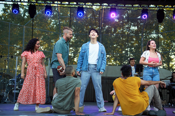 So, for their latest musical revue (TTC's speciality, although they have staged two musicals), the company had to find a new venue. Last summer's temporary home, the Beltane Ranch, was ill-suited to the purpose of an outdoor musical celebration. After some persuasion on the part of TTC Executive Director Brad Surosky (and welcome cooperation from the mayor, city council, and manager of Sonoma–many of whom were welcomed onstage at the top of the show as a nod to their influence), the company found a new temporary home at the "Field of Dreams" (also known as Fazio Field), a local baseball field just a few blocks off the town's main plaza. WIth a stage at home plate and the audience filling the infield, Summertime, the first of their four planned productions this season, had a home, and opened last evening for a brief, four-show run, ending this Sunday. As proven in the past, the team assembled by Transcendence Theatre Company are consummate professionals. The ticketing, parking, shuttles, and all the other logistical stuff is, as Bruno Mars says, "smoother than a fresh jar of Skippy." The cast of 10 is somewhat smaller than in seasons past, but there seems to be a more consistent level of excellence. Where in years past a voice or two might have been a little thin or pitchy, there are no weak points in the cast of Summertime. Yet this first production unfortunately let me down on several levels. TTC usually finds a thematic thread for their revues–nothing resembling a plot, but more than a mere commonality between the songs to tie the show together. But with Summertime, the only thing really connecting the songs is that they are mostly about summer and its joys. Even with this, some of the numbers–delightful as they are, seem untethered to even this slip of a theme. Then there are the costumes. Or, more accurately, a notable lack of costumes, for–with few exceptions–the cast seems to be attired in garb they pulled from their own closets. And there is an odd–yet still entertaining–break in act two, when Surosky hosts an onstage version of the '70s-era game show, "The Match Game," with cast members as "celebs" and a couple of audience members as contestants. Despite its charm, what's its tie to summer? Or music, or dance? If you're new to Transcendence, you probably wouldn't notice anything lacking. The cast has tremendous energy, the band is tight, and the entire staff greet you like old friends. But if you've been before, you will miss the raw beauty of the Winery Ruins venus. The cast, while exhibiting a high level of excellence overall, does have a few standouts. The first is Aaron Lavigne, who is a vocal powerhouse equally at home with a tender ballad as he is with a rock anthem. (OK, he might be a little more at home with the anthem, but we're picking nits here.) The second terrific performer is the "big things in small packages" Sharone Sayegh. In addition to her million-watt smile and eyes that seem to say, "I'm so happy to meet you!," she has a lovely alto over which she seems to have complete control. Finally, Michael Schimmele shows off a pleasant baritone with a gorgeously woody tone, as well as a joyous exuberance on stage. Summertime only runs through this Sunday, but if you miss this one, you can still catch TTC's remaining efforts in July, August and September. Summertime runs through June 23, 2024, at Field of Dreams, 151 First Street W, Sonoma CA. Performances Friday, Saturday and Sunday evening at 7:30pm. Tickets range from $70-$185. "Gold Level" tickets include VIP parking, two glasses of wine and admission to the pre-show lounge area. For tickets and information, please visit www.TranscendenceTheatre.org. |
