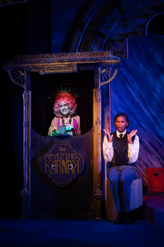 Sound like light-hearted fun? No, well, get yourself to Ride the Cyclone, which opened this week at the New Conservatory Theatre Center, and you will discover that the show filled with lots of humor (only some of it dark), some lovely songs, and a sweet message about friendship and making the most of one's brief time on earth–whether that ends at 17 or 117. The set, by Matt Owens, is delightfully spooky, with sections of mangled coaster track adorning the proscenium, and an abyss-like opening upstage featuring a projectable surface that is used to clever ends by projection designer Lana Palmer. The show opens in a rather macabre way, with a headless girl, back to the audience, singing the haunting "Dream of Life": "I know this dream of life is never-ending. It goes around and round and round again. You know the sun is rising while descending–it goes on and on and never ends." Once the the five teens–all in the uniforms of St. Casein's Catholic school–arrive in limbo, where they are under the control of Karnak, they learn one of them will have the chance to be brought back to life on Earth. But only one. Instantly, one of the teens–Ocean O'Connell Rosenberg (raised by "far left of center humanists" and confirmed in the Catholic Church and bat mitzvah-ed at the local synagogue the same week–but "doesn't like to brag about it because it upsets my Buddhist sensibilities") steps up to sing about why she should be the one given a second chance. After all, she has a perfect GPA, plays sports, and participates in many extracurricular activities. It's almost as if she's applying to a top-tier college, and her song, "What the World Needs" is like an admissions essay. Ocean is played with delightful superiority and bubbly teen energy by Anne Norland. (Ocean's favorite record is an album from Up With People, a squeaky clean youth singing troupe that had some popularity in the 1960s and '70s, though from an acquaintance of mine who toured as a member of the group told me it was a hotbed of homosexuality!) Over the course of 90 intermission-less minutes, all of the kids get a chance to express themselves through song. Noel Gruber (Jon Gary Harris), the only gay kid in the small Canadian town of Uranium City, bemoans his plight: "Being gay in a small town is like having a computer in the stone age–you can have one, but there's no where to plug it in." Noel dreams of being a tragic French prostitute in the early 20th century, modeling his persona, Monique Gibeau, after Marlene Dietrich's portrayal of Lola Lola in the classic German art film, The Blue Angel. Mischa Bachinski (Matt Skinner) is a Ukrainian adoptee who came to Canada under false pretenses and is shunned by his adoptive parents. To express his angst, he turns to "self-aggrandizing commercialized hip-hop," rapping "This Song Is Awesome" with the help of some T-Pain style auto-tune. At the other end of the rage spectrum is Constance Blackwood (Sage Alberto), Ocean's BFF, mainly because she lets Ocean push her around. Her catchphrase, as determined by Karnak is "sorry." (Ocean's catchphrase is "democracy rocks!") Constance is always looking to slink off into the background and please everyone, an impossibility she nonetheless attempts. Ricky Potts (Milo Roland), who was mute in life (due to childhood illness), finds a voice in this afterlife and tells of of the fantasy existence he constructed for himself as the savior for a planet of cat people, in his song "Space Age Bachelor Man," which find him in a glorious silver lamé bodysuit, serenading his feline subjects. (Costumes by Jorge R. Hernández) Then there is the headless girl from the opening scene, identified as "Jane Doe," as he head was never found after the accident and no one came to claim her body. In limbo, Jane uses the head of a doll to replace her own, and Grace Margaret Craig, who plays Jane Doe, sports a curly blonde wig and brightly rouged cheeks with long, long eyelashes like something out of a slasher film where an evil doll kills off its owners one by one. The cast assembled by director Stephanie Temple is one of the best to ever grace the NCTC stage. The players have a marvelous time diving into their roles, milking both the comedy and the teen angst present in the songs and book by Jacob Richmond and Brooke Maxwell. There's not an off-key voice in the bunch, but two performers stand a little taller than the rest. Grace Margaret Craig has an operatic soprano with such a lovely tone and strong musicality that I wouldn't be surprised if she one day ends up onstage down Van Ness Avenue from NCTC at SF's War Memorial Opera House. If Sage Alberto ends up anywhere outside the world of musical theatre, it would be in rock or soul clubs, so bluesy and wrought with emotion are her vocals. Ride the Cyclone is as thrilling as the title suggests. But it's also very funny, a little heart-warming, and even a little subversive. It's also well worth buying a ticket for this attraction, as it's a ride you don't want to miss. Ride the Cyclone runs through October 27, 2024, at New Conservatory Theatre Center, Decker Theatre, 25 Van Ness Avenue, San Francisco CA. Performances are Wednesdays-Saturdays at 8:00pm and Sundays at 2:00pm. Tickets are $25-$65 For tickets and information, please visit NCTCSF.org or call 415-861-8972. |