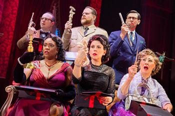 Given that Clue is only here through this Sunday (the 27th), I will keep this review brief in order to give you more time to rush to the Curran website and order your tickets. Clue is based on the movie of the same name (starring Tim Curry, Madeline Kahn, Christopher Lloyd, Michael McKean and more), which was in turn based on the Hasbro board game. (Though one of the biggest laughs in the show comes from the butler's response when a character asks [referring to the mansion] "Who designed this place?" "The Parker Brother," he deadpans.) There's no real discernible plot per se, just a lot of murders, finger-pointing, and searching for clues. Guests–the names we all remember from our childhoods, Professor Plum, Miss Scarlett, Mr. Green, et al.–arrive for a dinner at the Boddy Manor, where it's revealed (very minor spoiler) that all are being blackmailed for one reason on another. No, what makes Clue worth seeing is the tremendous cast who embrace the silliness of the whole affair and invite us to join in their joy at acting out this ridiculous story filed with slapstick action, silly puns, and general hilarity. I'd say the cast is uniformly terrific, but with a caveat. They are all excellent, but John Shartzer, as Mr. Green, stands out for his absolutely wondrous physical comedy skills. From his first entry, when he crumples from a standing position to sitting cross-legged so quickly you might miss it if you blink, to his pratfalls and loose-limbed movements, he seems to always be doing something very difficult that he manages to make look easy. After this single performance, I'd put him on a par with some of our greatest physical comedians: Buster Keaton, Martin Short, and the Bay Area's own Bill Irwin. Christina Anthony plays Miss Scarlet with vampy seductiveness, and Joanna Glushak takes the "little old lady" stereotype of Mrs. Peacock and turns it on its head, milking the most from the lines she's given. Some of the best lines are given to John Treacy Egan, who plays the very dim Colonel Mustard. When told "you know who" is actually an acronym ("UNOWHO"), he pipes in with "I have a sister who's a gymnast." Except for a line at the top of the show (which takes place in the 1950s) about the House Un-American Activities Committee–"Who are the un-American Americans among us?"–Clue is delightful escapism at its best. I went in expecting very little, was happy to hear the show runs 90 minutes, and left wanting more. Clue runs through October 27, 2024, at the Curran Theatre, 445 Geary Street, San Francisco CA. Tickets range from $49 (including orchestra!) - $130. For tickets and information, please visit broadwaysf.com, or the Curran box office. For information on the tour, visit clueliveonstage.com/tour.