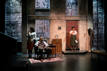 As a single father, Godfrey struggles with the loss of his wife and with the challenges of raising two daughters while working the graveyard shift at a bakery. Godfrey–in a wonderfully heartfelt portals by Moore–seems especially perplexed by the challenges life presents. For guidance, he turns to Father Divine, a well-known preacher of the time who fancied he was God himself. Father Divine's portrait hangs on the upstage wall (terrific set design by Randy Wong-Westbrooke), and Godfrey is forever coming up with questions he plans to ask Father Divine when he comes to New York for a rally of his Peace Mission Movement. He also reminds his daughters to live by Father Divine's three Vs: virtue, victory and virginity. For the girls, however, Father Divine "stands between us and pleasure." While Godfrey plugs along at his dead-end job, Ernestine, 17 and on the verge of graduating from high school, imagines a very different sort of life for herself. While she fantasizes about a career in the movies, it seems clear this is truly only a fantasy for her, a way to escape the strictures of her home life. Ernestine is the grounded center of this play, sometimes narrating the action, often to hilarious results when a scene will play out in a positive way, only to have Ernestine tell us that's not how it actually went and the scene replays as it really happened. As act one plays out, two very different women enter the family's life. First comes the girls' maternal Aunt Lily (Asia Nicole Jackson), a card-carrying communist who lives in Harlem and revels in a life very different from what Godfrey expects from his daughters. Lily smokes, drinks heavily, and isn't afraid to strut her stuff, especially sartorially. Ernestine remarks that Lily is the "first colored woman dressed like a white lady." For her part, Lily claims her "subversive mission is to out-dress them all!" The second is Gerte (Carrie Paff), a German immigrant Godfrey meets on the subway in a chance encounter that blossoms into something that results in the rather surprising close of act one. Crumbs from the Table of Joy is one of Nottage's earlier plays, but its vitality, expressive language, rich character development, and sense of story presage later works such as Intimate Apparel, Sweat and Clyde's. With the amazing script as a starting point, director Elizabeth Carter has the play rocketing along, using Kevin E. Myrick's lighting cues to clearly indicate transitions between scenes and to shift between Ernestine's narrative commentary to us and her interactions with her family. Even more impressive than Carter's direction are the performances from her cast, who are nothing short of brilliant. Every moment finds them fully focused and in perfect sync with their scene partners. When Jamella Cross's Ermina hears that Father Divine has told her father her name in the Peace Mission community is to be "Devout Mary," her face screws up in disgust in a way that is nothing short of hysterical. When Gerte meets Godfrey on the subway and offers her a cookie, she turns away from him and rapidly stuffs it in her mouth like a raccoon devouring a tidbit it is afraid may be stolen away. When Aunt Lily comes home from a bender, it seems she is weaving as steadily as she can, and almost succeeding. As Ernestine, Anna Marie Sharpe carries the weight of the play on her shoulders, but she is so in tune with her character and so sure of Ernestine's confidence that the weight seems like no burden at all. Her timing is impeccable, and her confident approach to the role is mirrored every time Ernestine stands up for herself. David Everett Moore is just as skilled, showing us a character who is lost in grief, hanging onto his family and his beliefs by the slenderest of threads. His mouth seems to be either in a worried frown or, less often, a broad smile–almost never in a neutral gesture. Godfrey seems beat down, but when he reflects back to a happier past, Moore's entire body seems to lose the stiff carriage he uses as armor. With this terrific ensemble under stellar direction, this is a must-see for anyone who loves the sort of drama that lets you be a fly on the wall for a family's fascinating–if troubled–life experiences. Crumbs from the Table of Joy runs through May 25, 2025, at Aurora Theatre Company, 2081 Addison Street, Berkeley CA. Performances are Tuesdays through Fridays at 7:00 p.m., Saturdays at 8:00 p.m., and Sundays at 2:00 p.m. Saturday matinees at 2:00pm on May 10, 17, and 24. Tickets are $38-$68, with reduced prices for high school and college students. For tickets and information, please visit www.auroratheatre.org or call 510-843-4822. |