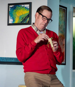 Ross Valley Players has chosen Tartuffe to open its 2025-26 season in a production directed by Adrian Elfenbaum and set in Los Angeles in the late 1960s. RVP regular Steve Price (who is also listed as producer) plays Tartuffe, and it is his work–and that of several other cast members–that almost saves this production from the ham-fisted direction, sing-song delivery of the text, and one very over-the-top performance that combine to sink this classic comedy. As with the original French text, Richard Wilbur's translation, which is used here, is written entirely in verse. Although this can be charming when done well–as Tamar Cohn, who plays Mme. Pernelle, Emily Anderson (the maid, Dorine), and Price himself do–the cast far too often fall into a sing-song pattern, hitting the rhymes too hard. This has the effect of having the audience waiting for the next rhyme to fall, rather than paying attention to what the text is saying. It also results in a pace that lacks variation and interferes with the comic timing of Molière's work. If you are unfamiliar, Tartuffe tells the story of a ne'er-do-well vagrant who wheedles his way into the good graces of Orgon (Douglas Nolan), a well-to-do homeowner whose daughter Mariane (Chloris Li) is betrothed to young Valere (Eliot Hall). Both Orgon and his mother, Mme. Pernelle (Tamar Cohn), are perfectly besotted by Tartuffe, to the point that Orgon threatens to break the engagement to Valere in order to have his daughter wed the falsely-pious Tartuffe. More than that, Orgon is so taken by Tartuffe's scheme that he promises to give all he owns to the con man, thereby disinheriting his son Damis (a delightful Nic Moore). Even though Tartuffe makes no secret of his lust for Orgon's wife Elmire, at least when Orgon is out of sight, Orgon refuses to believe Elmire when she tells him of Tartuffe's bawdy advances on her. Ultimately, through subterfuge and some royal interference, Tartuffe's scheme will end badly for him, and everyone else will end up happily ever after. While WIlbur's text includes some clever rhymes, even within some complex sentence structures, most of the cast fall into the trap of speaking in a metronomic sing-song that completely pulled me out of nearly every scene. If it weren't for Price, Cohn, Anderson and Moore, who manage to speak the verse in a more flowing, naturalistic manner, this would have been a very painful two hours and fifteen minutes for me. As it is, most of the pain comes from Douglas Nolan's portrayal of the nobleman Orgon. Nolan is completely out of tune with his scene partners, pulling faces, goggling his eyes, shrieking his lines, and generally overplaying the role. His bio in the program states that he has been "clowning and juggling professionally for more than 30 years," which may explain his approach to the role, misguided though I believe it to be. I hate to be cruel, but I hated every moment he was on stage. Though Nolan's antics threaten to overwhelm every scene he's in, there are other, more delicate–and far funnier–performances to be seen. Steve Price, whose work has grown on me over the years, is terrific here. Dressed in a Mister Rogers-esque red cardigan and khakis, he appears harmless enough, but he uses a slightly squeaky-raspy voice and evocative eyes to let us see the evil intentions underneath. It's some of the best work Price has done–never drifting into parody, but letting Molière's snarky satire peek through his simple-man-of-faith façade. Tamar Cohn plays Orgon's mother with a delightfully officious air, and a sense of privilege that lets us know she's used to getting things her way. As the maid, Dorine, Emily Anderson is also able to quash the instinct to sing-song the rhymes, letting the text flow much more naturally. Finally, Nic Moore brings a significant charm to a relatively minor role. Watching his subtle, yet evocative reactions to what is going on around him is one of the highlights of the evening. For me, directors do their best work when I don't notice it. If their choices feel natural and come directly from the text (and subtext) of a play, their hard work usually comes off as effortless. Here it feels as though Elfenbaum–who did such a marvelous job with last season's It's a Wonderful Life, A Live Radio Play–let the challenge of making the verse feel naturalistic slip between the cracks while blocking a play with a relatively large cast in a relatively small space. What's more, though he chose to set the play in 1960s Los Angeles, the only references to this are the music that plays pre-show, top of show, and at intermission, and in the mid-century furnishings that occupy Mikiko Uesugi's set design. The references to kings and lords and sabers and foils and forced marriages feel wildly out of place.