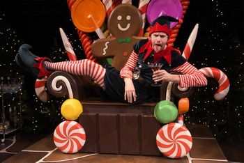 His twentysomething day adventure is detailed in his December 23, 1992 NPR "Morning Edition" essay, "Santaland Diaries," giving the now-famous humorist, author and comedian his first big break. A longer version of the essay was adapted to the stage in 1996 by Joe Mantello, entitled The Santaland Diaries. This December, TheatreWorks Silicon Valley is presenting the one-man show as its debut holiday offering at the Lohman Theatre, Los Altos Hills, with the as-advertised "darkly funny dose of holiday cheer" running concurrently with its main-stage production at the Lucie Stern Theater in Palo Alto, Around the World in 80 Days. Even before he begins as the young David Sedaris, Max Tachis (in his TheatreWorks debut after recently recognized, starring roles at Palo Alto Players and City Lights Theatre) warms up the gathered audience in a pre-act appearance that includes rapping the familiar warnings about phones, exits, and candy wrappers. When he re-enters as David, he goes right into a seventy-minute storytelling where he directly interacts with the soon-to-be-howling audience with facial and vocal expressions ranging from silly and cute to devilish and foul. Frequently making stops at a cart loaded with booze and a six-pack of beer he brings with him on stage (which he consumes as he tells his tale), Max's David confesses along the way, "I have never been a good person ... I have never even been mistaken as a good person." Maybe that is why he chooses Crumpet as his elf nomenclature, while all the other elves use names like Frosty, Rudolph, or Snowflake. As he relates going through extensive elf training in rooms with no windows and with scores of other elves-to-be (most of whom he describes in rather loser-terms), David complains, "It makes one's mouth hurt to speak with such forced merriment." The highlights he relates of his days as an elf tend to feature such events as a mother allowing her son to pee in the fake snow of Santaland and a Santa who is trying to make it with the mothers. Once he figures out that "Santa" is an anagram of "Satan," Crumpet becomes even more inclined to act out the dark sides of elf-dom, something that becomes easier as the days tick down to Christmas and the crowds become bigger and more aggressively impatient. He even begins to tell rowdy kids waiting in line that if you are bad, Santa will not only not bring your toys, he will come to your house and steal things (the TV, toaster, bed linenseverything!). Max Tachis is hilariously delightful as David/Crumpet. He employs voices ranging through many octaves and facial expressions that at times are boyish in their wide-eyed wonder and at other times close to evil in their evident intent to scare kids (and parents) into behaving. When he brings out a smaller version of himself as a dressed elf (a puppet resembling a "Sesame Street" or Avenue Q star), the humor is ratcheted up several notches as the puppet becomes Crumpet and Max narrates and/or becomes adults, other elves, or kids. Through Max's inventiveness and mastery, Crumpet's puppet (designed by Mark Stys) employs on his sewn face a number of wonderfully expressive postures and countenances, all to the audience's expressed pleasure. Director Jeffrey Lo ensures that every minute of the seventy is packed with laughs and that the entire show is over before it has hardly begun, so seamlessly do the scenes pass as Crumpet relates his trials and tribulations. He also has clearly given Max Tachis plenty of leeway to add spontaneous touches that keep the narrated essay sparkling through the actor's natural abilities to be on-the-spot funny, punkish, and charming all at the same time. The scenic design of Christopher Fitzer is a real winner with its big Santa throne consisting of brightly colored candy canes, gingerbread men, and gumdrops. (Audience members are encouraged to come up before and after to get their pictures made.) A forest of lit Christmas trees provides a background along with other unfolding surprises that make the stage an authentic piece of the more massive Santaland that Crumpet describes in detail. Mia Kumamoto's lighting works well to shine holiday cheer into the scenes while Howard Ho's sound design puts us right in the middle of Macy's with is hustle, bustle, and Christmas crowds full of shopping frantic. Jill C. Bowers has created Crumpet's "work uniform," a colorful mixture of green velvet knickers, candy-cane tights, and "a perky little hat decorated with spangles" (all enough to be OK for Crumpet in Santaland but too embarrassing for him to walk dressed as such through the sports department). While there is so much still to enjoy in David Sedaris' narrative about his purported real-life experience as a Macy's elf (but one where others' research has subsequently shown to have elements of pure fiction injected) twenty-five years later, some of the details are now datedeven embarrassingly so. Jokes about a dwarf, about kids who have deformities, or about male Santas making groping motions or sexual come-on comments to mothers now do not draw the laughs they may have once. And what by the way is a camcorder? It would be a welcome task, it seems to me, for David Sedaris and Joe Mantello to pull out the script and do some updates before the popular and much-produced piece hits next holiday season on stages across America. But in the meantime, Max Tachis and TheatreWorks Silicon Valley find enough jewels still embedded in The Santaland Diaries to make it a worthwhile diversion from holiday mall madness. The Santaland Diaries continues through December 23, 2017, as a TheatreWorks Silicon Valley offering at Lohman Theatre, Foothill College, 12345 S. El Monte Road, Los Alto Hills CA. Tickets are available online at www.theatreworks.org or by calling 650-463-1960. |
