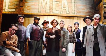 "Attend the tale of Sweeney Todd. That the soloist dips his hand in a bucket and removes it dripping in red further alerts the audience that this production of Stephen Sondheim (music and lyrics) and Hugh Wheeler's (book) 1979, eight Tony winning Sweeney Todd: The Demon Barber of Fleet Street is going is to be particularly stark, dark, and bleak. The Stage takes this Sondheim favorite that has graced Broadway three times, the West End four, and grand opera stages in at least ten countries worldwide and strips the musical down to a bare minimum of cast, set, and orchestra, putting it in a time that could be now, fifty years ago, or fifty years from now. The result is to over-expose the musical's bloody, raw, and troubling tale where inherent humor found by other productions is minimized and where the clanging of metal, the slamming of coffin-like boxes, and the discordant screeching of chorus voices become notes as important in conveying the story as any sung beautifully and artfully by the individual actors. From the moment he steps off the boat (actually a small, flat-bed cart, begrudgingly pushed along by a ruffian), Noel Antony's depiction of Sweeney Todd makes its mark as a man brimming with pent-up ragea man with only one thought, which has been brewing during his fifteen months of forced exile: Revenge. His deep-set, black-encased eyes seethe with a glare almost as red as the blood he will eventually draw from victims who dare to sit in his barber chair and feel the skilled blade of his razor on their cheeksand then necks. Banished as a barber who was known then as Benjamin Barker by a crooked Judge Turpin who coveted his wife, Todd/Barker now returns to sing in a voice full of seething anger but with still a calm resolve: "There's a hole in the world Noel Anthony takes his rightful place among many more famous than he as a Todd to recoil from, to relish his every snarl and venomous stare, and to remember in dream and nightmare. He brings a commanding voice that can both bellow in its choler and whisper in its sad memory of a wife lost and a one-year-old daughter left behind who now lives as the ward of the wicked Judge Turpin. Sweeney finds himself in one of the worst parts of London at the counter of what is definitely the worst meat pie shop in Londonsomething a roller pin slamming Mrs. Lovett readily admits in a rambling, rhyming self-introduction to Todd ("The Worst Pies in London"). The Stage's most called upon actor, Allison F. Rich, steps once again into a leading role for the company to take on the woman made iconic by the likes of Angela Lansbury, Patti LuPone, and Emma Thompson. She does so with an interpretation dominated by eyes that explode with their enormously black-and-white expression; a mouth that moves into a hundred different, red-lipped forms; and a voice that hurls insults, smacks of cynicism, and yet can also be syrupy sweet and sultrily seductive. Those last, sexy ploys of her vocals are saved as she increasingly has eyes for Todd as a potential husband, and she envisions that they can live forever down "By the Sea." Soon after Todd arrives at her shop, she offers the ex-barberwhom she quickly recognizes as the banished Barkerhis former set of cherished razors which she has saved all these years. Todd greets the shining blades as "my old friends" in a bone-chilling voice that leaves hairs on one's neck standing at attention. He is offered a room to rent above the pie shop to reopen his barbershop, with a plan to slit the throats of those who caused his and his family's demise. In one of the funnier moments of the musical, Mrs. Lovett and he realize that the resulting dead bodies are meat not to be wasted in a town where the meat in pies is often cat or rat. Their "ah-ha" leads to act one's crowd-pleasing, finale number ("A Little Priest") where the two gustily, raucously sing of pies containing fried friars, too-salty marines, politicians so oily they run, and piccolo player pies who are piping hot. Together, Noel Anthony and Allison Rich combine for a Todd/Lovett pairing that strikes its own path of merit with interpretations wickedly funny, horrifyingly stunning, and ever-more demonizing. The rest of this ten-person cast each plays both a singular, primary character of the story as well as various and sordid parts as invented by director Kenneth Kelleher, such as street people who often are present sulking in dark corners, sleeping under metal encasements, or staring blankly ahead in a streetlight's spot. They also combine in Sondheim's score to act throughout as a Greek-like chorus, giving their rhymed commentaries in lyrics often fired as rapidly as bullets. In these moments, this production particularly shines as their voices combine in shrill, piercing, strident harmonies in unsettling numbers like "City on Fire." Individually, several in this cast are as stellar in their particular portrayals as the two leads. As Judge Turpin, Christopher Vettel's striking bass voice has a nauseous effect as he sings of "Johanna," the ward that he has treated as a daughter and now intends to marry. When he joins Sweeney in a duet of "Pretty Women," the effect sends shudders down one's spine, as Sweeney's raised blade stands ready to make the song a trio. The Judge's enabler in his crimes is a street cop known as The Beadle, deliciously and slimily played by Branden Noel Thomas, who brings a voice deeply rich that can quickly rise to a fabulous falsetto. He also habitually walks around holding his right hand slightly bent at the end of a side-extended arm, suggesting an air of suspect swish for a man who clearly has a raised-nose, aristocratic opinion of himself that more rightly belongs to a duke or earl. A fellow boat traveler with Todd as he made his way to London is Anthony Hope, whose last name says everything about the angelic look of wonder, good-naturedness, and optimism that Sam Faustine brings to the role. He also brings perhaps the best voice among many fin