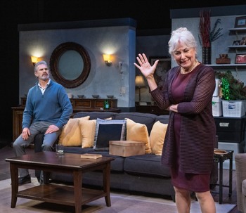 Much has changed in the world around them since those days when AIDS was both a sure death sentence and a reason for many families to turn their backs in shame and righteousness on its victims. What has not changed is the prevailing ache of loss, the futile need still to find blame, and the resulting anger for those Polaroid moments when backs were turned and hugs not given. In a gripping, raw-nerved unveiling of emotions long pent-up and unexpressed, City Lights Theater Company presents a search for resolution and forgiveness in the latest Tony nominated play of Terrence McNally, Mothers and Sons. After two decades of no communication, Katharine appears on a late December afternoon at the Fifth Avenue flat of her dead son's former lover, Cal. Bearing Andre's journal sent to her years prior by Cal (a journal neither she nor Cal have either dared ever to open), Katharine is startled and increasingly incensed to discover Cal now has a happy family of own, his younger husband Will and their eight-year-old son Bud. The two begin a volley of back-and-forth lobbed memories told with some smiles and sighs peppered by high-velocity accusations thrown over the net in biting jabs of "Why didn't you?," "How could you?," and "Where were you?" In between their multiple ebbs and flows of moments when genuine connections occur in their reminiscences of Andre and when eruptions suddenly explode as one or the other breaks in with a new jab, husband Will and son Bud pop in and out, sometimes to antagonize anew by making a snide remark (Will) and at other times, to diminish quickly the air's tension by being an inquisitive, but totally innocent boy (Bud). Both Katharine and Cal struggle in determing how to (and even whether or not to) relate to each other and in that push and pull, each begins to relinquish long-held secrets of self regret that have poisoned their souls. Lillian Bogovich is stunningly powerful in the role of Katharinea woman who enters the apartment carrying a lifetime of regrets. Beginning with a recently deceased husband who took her from her beloved New York to the hated land of Dallas and its "gratuitous flattery," her bitter sadness in this visit focuses mostly on losing a son whom she largely avoided and rejected once he got the disease she clearly still has a difficult time naming. Every minute Ms. Bogovich's Katharine is on stage it is difficult for the spotlight not to stay hovered on her as she continually reacts to what she sees and hears around her in both carefully measured manners and astonishingly emotive expressions. She stiffens in abrupt defiance of accepting any blame, lashes out with a voice full of biting edge, and then melts into a tearful ball of cherished memories. Her eyes are always looking out unseen windows between her and the audience as if she hopes to catch one more time a glimpse of her long-gone son or of a time when maybe she was more at peace with herself. When she is not looking out, her eyes hover and scan nervously the floor around her as she largely avoids looking into the eyes of the man of whom she accuses, "You took him from me forever." With a mouth that stubbornly stays locked in a horizontal line of grimace, Katharine's face often appears as if any moment, it will break into a thousand pieces. Katharine's late afternoon becomes a journey of unexpected discovery as her floodgate of out-pouring to Cal becomes an unexpected therapy session to a reluctantly listening counselor. At one point she admits, "There's so much to say that is not about Andre ... It's all about me." The woman who comes in declaring, "I don't want closure ... I want revenge," later discloses, "I was always only Andre's mother ... They didn't see me as a person." As she recounts her own life using memories of Andre as a means to her own ends, Katharine is both bitter and defeated as she asks rhetorically to Cal, "Why did your life get better after Andre died and mine got worse?" Lillian Bogovich presents us with a mother we want to dislike, even hate, as much as Cal has for these past twenty years. She becomes a person many of us may want to forgive and leave open the possibility that maybe she can finally changea temptation for reconciliation that Cal is clearly struggling to resist throughout the prolonged visit. Cal's initial non-stop, detailed description to the silent, statuesque Katharine of the Upper West Side and Central Park scene below them gives way to his in-bred, in-control, and more cautious manners that come with his being a high-paid financial planner. As Katharine continues to extend her surprise visit beyond his evident comfort level, Damian Vega finds subtle-to-blatant ways to express Cal's lingering pain, sorrow, and even bitterness about his life with Andre and his memories of this, Andre's mother. While these past nine years, Cal has clearly moved on from Andre's death to establish a wonderful life and family, Katharine's appearance has unlocked both savored and suppressed memories that once out, open up hurt that has never been resolved. "You should have held me that day ... I wanted you to love me for loving him," he tells a still-unmoved Katharine. While he stumbles a couple of times in his lines and sometimes keeps his emotional expression within a too-narrow range, overall, Damian Vega does in the end find enough ways to believably and convincingly alternate between happy and sad, comforting and critical, stay longer and leave now. As six-year-old Bud, fifth-grader Izaiah Gutierrez shows a hit-you-in-the-heart genuineness that only a child that age can sometimes show to someone he is meeting for the first time. Katharine is caught quite unawares when Bud suggests in that kind of sweet, matter-of-fact voice that only a young child can have, "You can be my grandmother; I don't have one." With a barrage of questions for Katharine that freak out his parents, Bud begins slowly to win her over with his natural charm and caring (and a plate of Oreos), and th