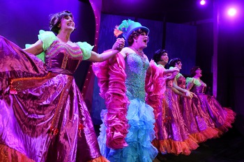 The only musical to win two Tonys for Best Revival of a Musical, as well as a Best Musical Tony for the original production in 1984, La Cage aux Folles is now receiving a not-to-be-missed production at San Jose Playhouse with a cast that leaves one's sides hurting from laughing and one's eyes welled up in heart-felt emotion. The musical with a book by Harvey Fierstein and a score by Jerry Herman broke many barriers when it opened in 1983, being the first Broadway musical to portray openly and proudly a gay, romantic relationship. In 2022, the story (based on the 1973 play by Jean Poiret) and the music/lyrics still titillate, entertain, and declare proudly a message important for all to hear: "I Am What I Am." Master of ceremonies Georges welcomes the audience, pointing out some of us with his big-smile greeting of "so many old friends, so many new faces, so many old friends with new faces." He is soon joined on the stage by six lavishly and outlandishly dressed "women" at his St. Tropez drag nightclub, La Cage aux Folles (translated in English as "The Cage of Crazy Women," with "folles" also being French slang for an "effeminate, gay man"). The high-heeled beauties sing a rousing "We Are What We Are," soon breaking into tap before ending with a high-stepping kick line, leaving the delighted audience with only a sample of the vast array of dance steps (the choreography is by Alan Palmer), costumes, wigs, and musical winners (Stephen Guggenheim is director) that are coming our way over the next two hours, thirty minutes. Missing from the stage is the featured star of the club, Zaza–the stage name of Georges' longtime partner in business and in life, Albin. Albin is in their upstairs apartment, dressed in a hand-painted, see-through robe and a surprisingly modest apron while "wrestling with a casserole" and dramatically sulking because Georges has refused to allow him to revive on the La Cage stage his Salome with her dance of seven veils. After Georges capitulates, we watch through the invisible mirror of his dressing table Albin transform into the magnificently and flamboyantly attired Zaza. We also are introduced to Zaza's distinct, smokey, powerful vocals as Alan Palmer sings "A Little More Mascara." Throughout the show, Alan Palmer's Zaza and Albin personas dominate the stage each time either appears or when he shows up metamorphosed as straight-acting "Uncle Albert" (or as straight as he hilariously can) and as Georges' wife, the conservatively dressed and properly mannered "Sybil." But when Zaza brings Act One to a close with the song that has become the official/unofficial gay anthem, "I Am What I Am," Alan Palmer joins with merit the likes of Broadway's award-winning George Hearn and Douglas Hodge in creating a Zaza moment to be long remembered for its courageous, defiant, moving message. Albin is called upon to be someone other that his deliciously effeminate self because the 24-year-old son whom he raised like a mother, Jean-Michael, is bringing to Albin and Georges' home his bride-to-be along with her ultra-conservative, anti-gay parents. Jean-Michael cannot have Albin swishing around in lace and heels, eating his croissant with a raised pinky, or talking in a voice that roams from bass to soprano in one sentence. Albin is, of course, hurt beyond words. Well actually, when Georges asks him to absent himself from their home for one day, Albin does have a lot of words to say while also dressing himself from head-to-toe in fashionable, mourning black. It takes a walk on the beach and Georges' "Song on the Sand" to convince him to do this one thing for their adored Jean-Michael. It is Georges' "Song in the Sand" when we especially get to appreciate the deeply rich, hypnotically mesmerizing voice of Stephen Guggenheim as he once again graces the San Jose Playhouse stage. A regular standout in the past few years (prior to COVID-19), Stephen Guggenheim is well-cast as Georges, a man full of compassion and understanding for both his son and his partner yet also showing moments of impatience and exasperation with both. His "With You on My Arm" and "Look Over There" give him opportunities for his operatically trained, full and flowing voice to further wow the audience and to establish quite clearly that, at its heart, La Cage aux Folles is a love story between two men who have grown into one entity through a lifetime together at a time when being such a couple was risky–even in the overall liberal-minded France. Through inherent charm and youthful persuasion, Jean-Michael convinces his dad and eventually even his "mom" that their household needs to shed itself of all its gay artwork and décor and populate itself with a large crucifix and religious wall hangings (part of Julie Engelbrecht's clever set design). His winning argument makes great headway when Jason Kimmel brings his pleasantly melodic, alluring vocals as Jean-Michael describes his love for his fiancée, Anne, in "With Anne on My Arm." Jean-Michael is joined in a waltz by a stand-in for Anne–another member of the household who comes very near stealing the show every time he–she?–enters the stage. Brian Conway is rib-tickling funny as Jacob, the household's "butler" who decided long ago instead to be a "maid." When Jacob dances with Jean-Michael in the aforementioned scene, his long-lashes flutter, his toes twinkle, and his facial expression is a display of both hilarity and pure love/adoration that Jacob holds for the once boy, now young man before him. One could hardly imagine a better casting for the role of this opinionated, proudly effeminate, and unabashedly "out" servant–one who repeatedly defends with snarling snit Albin's fits and fickle to an oft-exasperated Georges. Other members of this talented cast of eleven also have their individual moments to shine. MaryTheresa Capriles is both a member of the Les Cagelles chorus line (Mercedes) and a famed restaurant proprietor named Jaqueline, who joins Albin and 