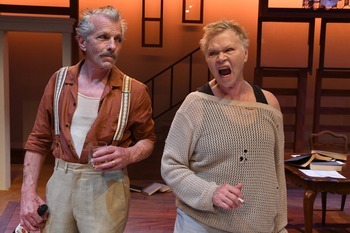Having seen several outstanding productions of August: Osage County since it debuted in 2007, I almost decided to skip this production. However, knowing San Jose Stage Company's history of stellar casts, daring–often edgy–directorial decisions, and overall theatrical excellence, I (thankfully) chose to attend their current take on the 2008 Pulitzer Prize for Drama winner by Tracy Letts. I am thrilled to report that, no matter how many times you have seen the multi-Tony-winning play, you should grab a ticket to visit this presentation of the plains of Oklahoma in the hot, sweaty summertime to witness a cast and company that has more than enough mettle to portray the full, rambunctious, no-holes-barred life of the Westons–be it pulling someone's hair, throwing dishes, or chasing mom around the house screaming at full voice, "I'm in charge now!" You, as I did, will likely exit the theatre knowing there is no scale high enough to measure the diseased dysfunction of this blistering brood nor hardly enough superlatives to describe the brilliance of this darkest, funniest, most jarring-to-the-bone of comedies about family. With an Oklahoma drawl slow and dignified and a voice grown grainy with age and whiskey, the handsome patriarch of the Weston family, Beverly (Randall King), opens the play by quoting his favorite poet, T.S. Eliot: "Life is very long." As he interviews a local young woman of Cherokee heritage, Johnna, to be a live-in housekeeper for the family (something his wife has no idea he is doing), he wryly admits, "My wife takes pills and I drink. That's the bargain we've struck." Later, with a half-smile and eyes that are both sad and sympathetic, he tells her in what turns out to be a foreboding of what is to come, "The place isn't in such bad shape, not yet." Bad enough, however, that after this prologue, the play opens with Beverly having mysteriously disappeared, and all the immediate and extended family are heading home to worry and console, soon to mourn, but mostly it turns out, to bicker and battle with full vigor and venom. Violet Weston is the matriarch of this clan and we first meet her as she struggles on all fours to climb the stairs, only to plop half-dressed midway while staring blankly into nothingness. Violet has pills hidden in most crooks and crannies, cushions, and closets all around the house. The many pills she openly takes are at least partly intended to relieve the burning in her mouth from recently diagnosed mouth cancer (a cruel joke of nature for a woman who emits from that mouth every four-letter word and insult imaginable to anyone and everyone around her). It would take an entire article of several thousand words to describe the bold, biting, blustery performance of Judith Miller as Violet, so stunningly magnificent is this mother who has no problem lashing out in monstrous tirade at any of her family members one minute and then becoming in the next a slumping, defeated ball of tears, seeking their love and compassion for all her own woes. When in her doped state she can barely stumble across the room, bumping unawares into furniture and family, all the time slurring words to the point of turning them into some unintelligible tongue. When only in a mild state of numbness, her venom can strike at any moment, as in one family gathering around the dinner table when her victims await their individual, inevitable, verbal lashings as she proclaims, "I'm just truth-telling ... Just time we had some truth's told 'round here's all." The more this mother claims to love, the more she attacks with profanity-laced barrages, hitting all the most vulnerable spots she knows to target in each family member for maximum, deadly, and lasting impact. Judith Miller bellows, snarls, cackles, and cries at volumes and intensity almost to shake the theatre's walls–all with a believability to make us shudder while also laughing at the dark humor and absurdity of it all. Three daughters/sisters gather in the family homestead, each bringing her own personal old and new issues, resentments, and secrets–all of which will spill forth both in trickles and floods. Barbara, the first-born, has long escaped the Plains, has avoided the family as much as she can, and has come home with a professor-husband she is divorcing since he is shacking up with one of his college students. Perennial San Jose Stage star and Bay Area award-winner Allison F. Rich never fails to find new ways to vividly express all the angst, anger, and, yes, disgust Barbara so often experiences with everyone from her mother to her sisters to her husband and her fourteen-year-old daughter. She rises to larger-than-life, near-monstrous proportions when she decides it is time to take over and do a "pill raid" in the house; and yet she at other times she sits alone, shudders, and stares alone–stunned that she is no longer in control of her collapsing life. Together, Judith Miller and Allison Rich are the evening's jarringly astounding standouts among a fabulous cast–a mother/daughter pair who are mirror images of each other in so many destructive and sad ways. Michael Ray Wisely is Barbara's cheating husband Bill, who is overall a nice guy and who at times tries to be a peacemaker in this warring household. However, even with a compassionate heart and sympathetic eyes, he too has a highly eruptive temper and knows how to push his wife's buttons as she pushes his. Carley Herlihy is their weed-smoking daughter Jean, who brings an adult edge and look to her mid-teen body and personality. Jean also openly and dangerously flirts with trouble as part of her own rebellion and confusion of the adult battles going on around her. Sister Number Two is another Oklahoma escapee, Karen, who has arrived from Florida with a fiancé no one knew about or has met (a slick and sleazy, smooth-talking Joshua Hollister as Steve Heidebrecht, who happens to like weed and teenage girls). Bouncing around the room as if all is rosy, Tanya 