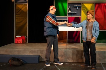 We first meet Marcus and Frank when they are twelve and waiting for rides home after a day at middle school. It takes little stretch of our imagination to believe adult actors Max Tachis (Marcus) and Wes Gabrillo (Frank) are in fact on the tricky cusp of becoming teens. They teeter between acting cool and being blasé as they first meet, with a lot of one-word responses to one-word questions. Sitting on the curb, Frank hugs himself in a protective stance while eyeing Marcus with a mixture of curiosity and dubiousness. Marcus is a bundle of hyped-up energy, wildly swinging his legs one moment and hanging upside down the next. Frank speaks with some hesitation and an air of not-sure-we-should-talk, while Max's rapid-fire chatter is like a vocal rollercoaster of up-and-down pitches that can suddenly erupt almost without cause into a laughter that crackles with silly sounds only a kid can make. Frank finally emerges from his self-made cocoon as he rises to rant about how he is once again waiting for a father who always seems to forget him–becoming louder and more upset with each repeated "again." Suddenly, a bond between the two is struck as they come to their first agreement: "Grown-ups suck." Now the floodgates open, and the two boys babble about "dumb" school assignments, about why Frank at first thinks Filipino American Marcus cannot really be American, and about how crazy to Frank (and maybe even cool) it is that Marcus eats a dish at home made from pig's blood. When Marcus rather sheepishly says, "Thanks for making the wait suck less," the two try to shake on it; but shaking hands is something these twelve-year-olds have evidently never done. After a couple of awkward-to-them-but-hilarious-to-us attempts, the two make up their own set of high-fives with jazzed-up moves and twists. A friendship is born. That initial chance meeting in 1999 is followed by a series of periodic glimpses through the years as we witness the two boys dress for senior prom and then go separate ways after high school while staying in touch when it counts most. On that first afternoon, their shared, "dumb" school project is to write about "What is your life going to be in 30 years?" Like any twelve-year-olds, little could they predict what is to come in life's highs and the lows, the ways they will hurt and be hurt, or the times they will feel betrayed by the other and the times one will save the other from sure-fire failure. As twelve-year-olds, they cannot wait to be an adults when "we don't have to wait for anyone." Marcus proclaims, "It must be so easy to be a grown-up." He and Frank will have much to learn about how easy it rarely is. Their discoveries are, for us, a multi-stop trip through time, speaking volumes about our own lives: who has always been there for us through thick and thin; what once-silly moments are now the memories we cherish the most; what dreams burst for us; and what new and even better ones suddenly appeared like miracles. As more than once implied thus far, both Wes Gabrillo and Max Tachis excel in their roles as Frank and Marcus. We watch as they age and mature bit by bit in every possible dimension–from physical attributes and demeanor to their voices and speaking patterns. Each faces unexpected losses with reactions and emotions that seem as if the events are happening before us for the first time, right now. We can see the relationship change, and not always for the momentary better; yet, when push comes to shove for either party, it is clear that the roots established on the curb outside José Rizal Middle School are in fact deep and forever. In the words of a critic's review, it is impossible to describe what is so clear that these two characters–and in fact, these two actors–really feel about each other as friends. That feeling must be felt in person to understand the true depth Wes Gabrillo and Max Tachis bring to their parts as Frank and Marcus. Beyond the well-honed script and the face validity of the actors' friendship, the direction of Leslie Martinson and the creative efforts of the production team are major reasons for such an enjoyable, meaningful, and visually engrossing evening. Scenes literally dance from one to the next with spark and a bit of hilarity when the times are good; scenes emerge and fade with dignity when life takes a turn for the not so good. All seems real and of the moment through astute direction where even wildly funny moments are never too over-the-top; sad moments are allowed time to sink it with appropriate pauses for silence; and eruptions of anger between life-long friends are regrettable but understandable. Ron Gasparinetti's scenic design is a set of colorful frames that flexibly becomes walls for a variety of settings and also becomes a palette for the scene-enhancing lighting and projections of Spenser Matubang. Particularly special is the manner in which the theme of friendship is highlighted through family-and-friend projected photos of people associated with City Lights–staff, actors, audience–in events matching those of an accompanying scene like a graduation, wedding, or arrival of a first child. Melissa Sanchez's costumes sometimes become a show unto themselves as Marcus and Frank change them as part of a scene transition, doing so in a choreographed sequence that is stomping, jumping, and twisty-turvy in nature (made all the better and possible by the music and boom-boom sound designed by George Psarras as part of his many, aural contributions throughout the evening). Frank and Marcus at twelve are impatiently waiting for parents and are also anxious to move on to the next period of their lives. It takes many years and a number of disappointments, but together they discover–and remind all of us–that life is not about waiting for next. Life is about taking full advantage of today, milking fleeting moments while they last, and then also making sure your closest buddy is able to do the same. Waiting for Next runs through