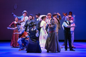 And, to continue my confession, when my favorite musical Ragtime is being staged by the company I personally most associate in the San Francisco Bay Area as perennially the proven, premiere venue to see great musicals–the Tony Award winning TheatreWorks Silicon Valley–and when that same musical is being directed by someone who has time and again been lauded and awarded over the past fifty-plus years for his sensitive, heartfelt, inclusive, and creative artistry–founder and recently retired TheatreWorks Artistic Director Robert Kelley–then, readers, you need to know that going in I expect this Ragtime to be a "must-see" until I am proven wrong. I am here to report that my expectation has not only been met, but has been exceeded by the magnificently cast, directed, and produced Ragtime, now being presented in a stunning, stirring, and spectacular production by TheatreWorks Silicon Valley. By the instant and sustained standing ovation as the ensemble's closing harmonies shook the rafters of the Mountain View Center for the Performing Arts, I believe that, while going in biased, my opinions were universally shared on opening night. Even more than when it was first produced on Broadway in 1998 or by TheatreWorks in 2002, Ragtime is as much about America in the current day as it is about America at the dawn of the twentieth century. The intertwining of three families' lives–a suburban white family of some wealth, a Jewish immigrant family arriving full of hope with only a suitcase in hand, and a Black family seeking their rightful share of the American dream that has thus far eluded them–becomes marred and marked by violent anti-immigrant sentiment, racist attitudes among the general public, police brutality against Black Americans, prejudice against labor movements, and attempts to thwart women's independence of thought and control of their own lives. Watching this sweeping portrait of America in 1906 reminds us that there is much work still to be done in 2022 to be the country that lives up to the hopes and dreams of the people we meet in Ragtime, to live up to those of the people we are today. In Ragtime's grand opening number, the interweaving stories of suburban whites, urban Black Americans, and arriving immigrants are introduced in beautiful harmonies, exacting syncopation, and interlaced dances and movements of Jewish, Black, and white natures. At the same time, we are also introduced to some of the many famous and infamous headliners of the day: Harry Houdini, Emma Goldman, J.P. Morgan, Henry Ford, Booker T. Washington, and Evelyn Nesbit. Evelyn (Melissa WolfKlain) squeals and squeaks with delight in a skimpy, scandalous outfit of red, white and blue as she sings her story of going from chorus girl to everyone's sweetheart via a love triangle in which one lover murders the other. The press proclaims it "the crime of the century," but Emma Goldman reminds us, "it was only 1906," with the full chorus answering, "And there were ninety-four years to go." Coupled with a young boy's out-of-the-blue cry of "Warn the Duke," the catchy, energizing music of ragtime that is "skipping a beat, singing a dream" cannot completely silence a sense that all is not as well for the future as this stage full of society's plurality is hoping. But the ragtime beats of the era cannot help but generate optimism, with the full ensemble ringing out in rousing and glorious final notes, "It was the music of something beginning, an era exploding, a century spinning." Each of the families we meet will share their stories that are woven with threads of anticipated new beginnings, possibilities of new friendship and new/renewed love, and dreams of making theirs and others' lives better. Each story will also have emerging clouds–storms that emit from the biases, prejudices, and often evil-based hatred of others who see those not like them or those with views different from theirs as a threat. Through it all, the new music of the age coming from the nightclubs of Harlem and transferred to the keyboards of society provides sustaining strength to find hope for the next generation that change for the better is always possible. Leo Ash Evens is Jewish immigrant Tateh, who sings to his young daughter (Ruth Keith) of their joining "the parade of Americans doing well" with an excited and exciting voice of clarity that can only bring smiles to those listening. His is one of many voices on a stage full of other arriving immigrants looking for "Success ... Here in America anyone at all can succeed." His beautifully sung notes of initial hope will soon be overshadowed by frantic desperation as Tateh experiences the realities of a cruel, anti-immigrant Lower East Side of New York City. However, Tateh will reemerge into realms of new possibilities in a toe-tapping, grin-producing "Buffalo Nickel Photoplay, Inc.," when he sings the song like many immigrants before and after him who find ways to make a dollar, then two, then hundreds from their inherent ingenuity and stubborn determination. Tateh, with his tallis strings hanging from under his tattered coat, meets a stylishly dressed woman by chance and both break the ice and dare to offer a "good day" to someone who looks and acts totally different from them. Their pleasantly, crisply performed "Nothing Like the City" is the first of several meetings and songs the two will share in a relationship that will continue to grow and flourish. Identified only as Mother, Christine Dwyer plays that woman whose husband (Father, played by Noel Anthony) and the society around her want to confine her to the roles of wife and mother, tasked with the upkeep of a household. However, meeting Tateh and finding a Black baby boy hidden in her flower garden eventually lead her to a point where she sings with a voice crystal clear and confident with new-found strength for herself and all women around her, "We can never go back to before." Getting to that point of self-discovered freedom is 