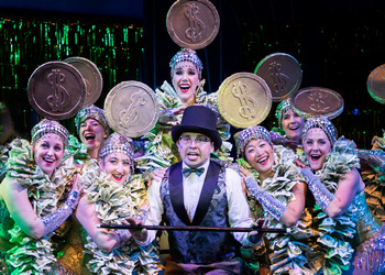 Perspective #2: Riotous, hilarious, sparkling, toe-tapping. So over-blown in portraying stereotypes of gays, Jews, Nazis, good-looking blondes, Irish, and old women that the ridicule is actually aimed at all those bigots who still hold such views. Which is a more accurate overview of the 2001, twelve-Tony-winning The Producers, by the grand master of dark comedy in film and on stage, Mel Brooks (music/lyrics/book), and Thomas Meehan (book)? Has enough changed since its Great White Way premiere and huge success that in 2023 the humor of The Producers is just not that funny anymore? Or is it even more relevant than ever as a way to vividly show how ridiculous those stereotypes are and how stupid and mean-hearted are the people who actually believe and act on them? Hillbarn Theatre and Conservatory put the case before its sold-out audience on opening night. Based on the almost constant, universal guffaws, spontaneous rounds of mid-performance applause, and smiles beaming and approvals buzzing as folks exited, The Producers is still seen for what it is at its heart an in-your-face, pull-no-punches, laugh-at-loud ridicule of the many stereotypes that unfortunately still haunt our society today. The case Hillbarn makes for continuing to enjoy Mel Brooks' always unconventional, sometimes uncomfortable sense of bizarre humor is strengthened by a production, directed by Erica Wyman-Abrahamson, that is in every respect big-stage, Broadway quality in an intimate setting where audience and actors are only a few feet apart. Between the original, less-successful 1967 film, the 2001 big-hit, Broadway splash and its subsequent tours and the 2005 film version of the musical, the story of the partnership between washed-up, big-ego, Broadway producer Max Bialystock and his timid, virgin-to-the-core accountant Leo Blum is quite well known. The two venture into an under-the-cover scheme (quite literally for Max) to raise $2M from rich old ladies with names like Lick-Me Bite-Me and Kiss-Me Feel-Me. The cane-walking elderly are quite ready to write Max a big check for a quickie on his couch, on his desk, or on a sidewalk bench. Max and Leo's plan is to use that money to produce a sure-fire failure on Broadway, close it after the first night, and skip town with the dough–all somehow legal under IRS rules. However, when the gay Hitler and his even gayer-prancing Nazi chorus line in the musical "Springtime for Hitler" turn out to delight rather than disgust the New York crowds, the newest Broadway hit turns out to be a legal nightmare for Max and Leo. As the stage lights come up, we see audience members leaving a theater, nuns, a garbage collector, and street people joining in song and dance in a rousing "Opening Night" as Max Bialystock's latest bomb on Broadway, Funny Boy, ends its one and only night on stage. Immediately, the combined mastery of musical, dance, and comical direction is vibrantly evidenced in the demonstrated talents and imaginations of Rick Reynolds, Christopher Childers, and Eric Wyman-Abrahamson, respectively. Voices ring in full-range harmonies, cast members move with vigor and precision, and Max himself is circled by all as he reigns over his latest flop, unceremoniously sitting atop his garbage-can throne. That first scene is just one of many side-splittingly funny ones where the high quality of singing is matched by choreographed hilarity executed both to tickle and to impress. Old ladies lining up their walkers to stomp through a geriatric dance number that almost causes a stroke it is so funny; chorus girls dressed in silver glitz furiously tapping and kicking while singing in voices high and shrill; and Bavarians oom-pah-pah'ing in step and song with the kind of gusto normally coming after consuming a full stein of hops and suds–all are examples of the sheer fun that fills the stage time and again throughout the evening. All are enough to leave one's sides and cheeks aching from so much full-bodied laughter. Probably like me, many audience members come into a production of The Producers with Nathan Lane and Matthew Broderick firmly and fondly implanted in memory for their depictions of Max and Leo on both stage and in film. In the future, I for one will also picture Edward Hightower as the brassy, bombastic, big-in-every-respect Max, and James M. Jones as the nerdy, nervous, and highly naïve Leo. I will also relish the synergistic energy the two actors create as a pair on stage, each bouncing off the quirks and foibles of the other to find ways to raise the script's built-in humor of a thousand puns and stage pranks to even greater heights. Both lead actors employ great lungs to sing with voices that can boom with full resound–Max from the get-go and Leo over time as his shaky timidity gives way to greater confidence and determination to be a real Broadway producer like his new-found buddy and partner-in-crime. When singing his near-show-ending "Betrayed," Edward Hightower uses every ounce of his creative juices and vocal prowess to wow and amuse us to the hilt as, from his jail cell, Max recounts through snippets songs, dances, and brief scenes all that has happened to this point in his and Leo's (mis)adventures. Surrounding the show's two stars are a collection of off-center, odd-beat oddballs who prove to be worthy of sustained applause and audience appreciation. Tops among these is Bay Area favorite Keith Pinto, as the closeted neo-Nazi who has penned the Hitler-honoring show that Max and Leo want to produce. As Franz Liebkind, Pinto truly steals the show as he and his cage-full of Nazi-winged pigeons perform "In Old Bavaria." His Franz manipulates his heavily accented words with vocals that twist, turn, and tweak nearly as much as his body does–a body that at times seems like it is a wooden marionette with someone else controlling the invisible strings, moving his limbs and joints in every direction at once. Every time he steps on the stage, it is as if the spotlight is 