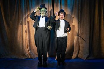 In 2007, Brooks (with help on book by Thomas Meehan) premiered his musical stage version of the 1974 film Young Frankenstein, which he and comedy co-genius Gene Wilder wrote spoofing the classic, Frankenstein films of the 1930s. Los Altos Stage Company is currently resurrecting a 2.5 hour, monster-manic, fun-packed, slapstick-stacked Young Frankenstein, featuring a fantastically funny and musically talented cast. Directed and choreographed with tongue fully in cheek and with eyes prone to devilishness by Morgan Dayley. LASC's Young Frankenstein is a simmering, summer sensation. Just as the villagers of Transylvania in 1934 are celebrating the funeral of the notorious grave-robbing, monster-creating Dr. Victor Frankenstein, his grandson, Dr. Frederick Frankenstein (pronounced by him as "Fronkensteen" to distance himself from his ancestry) is giving a rather zany lecture on the brain to his medical students, who are more curious about the rumors they have heard about the real pronunciation of his name. Joey Dippel introduces us to the excitable, dynamic, and quickly likable personality of Frederick, singing with ease in attractive vocals the rapid-fire, pun-filled lyrics Mel Brooks has provided him in "The Brain." When Frederick hears he has inherited the Frankenstein Castle, he reluctantly heads across the ocean to settle financial matters, leaving behind his finicky fiancée, Elizabeth, whose cartoonish-sung goodbye (with some X-rated hints) provides us an initial look at the first-rate comic and vocal talents of Gwyneth Price Panos–a glimpse of the totally over-the-top hilarity she will provide later in a surprise visit to the castle. Upon arriving in Transylvania, Frederick is greeted by a hunchbacked Igor (pronounced "Eye-gor"), whose hump just cannot stay in one place. Dave Leon is delightful, charming, and a downright hoot as Igor, soon to become Frederick's loyal, inseparable sidekick. Igor insists that he and Frederick must become partners in the "family business," with the two singing and dancing in Martin/Lewis style with vaudeville flair and big-stage voices, "Together Again"–the first of several guffaw-producing scenes that, as both director and choreographer, Morgan Dayley proves she is the perfect choice to bring Brooks' vision of lampoon to life. Even as Frederick still protests that his visit is to be short and in no way to involve the rebirth of dead bodies, Igor informs him that he now has a blonde-hair-flipping, leggy lab assistant, Inga, who hops not only onto the awaiting hay wagon, but also onto the stunned but soon aroused Frederick. What follows is a bumping, humping hayride where reeling and rolling in the hay leads to a climactic frenzy of shakes and a final yodeling of happiness by the erotically energized Inga (Gwenaveire Garlick, who is a riot, channeling the comic manners of Marilyn Monroe). At the castle, Frederick soon meets two once-lovers, who entice him to take up the family trade of monster-making. In a midnight dream, a wall portrait comes to life as Grandpa Victor (Keith Brown) and sings with voluminous gusto, "Join the Family Business." He is soon joined by a bevy of his and Frederick's past as lab-goggle-wearing, lab-coated ancestors sing in harmony and dance both the Russian squat-and-leg-thrusting and the Jewish bottle-on-the-head dances from Fiddler on the Roof–a trademark of Brooks as he often both honors and ribs past musicals. The other half of the once love-match is Victor's (and now Frederick's) big-eyed housekeeper, Frau Blücher, who also hopes he will continue the legacy business of her deceased employer/lover. Reminiscing alone of those bygone days of love, Caitlin Gjerdrum near brings down the house singing "He Vas My Boyfriend" in a mixture of voice types from deep, guttural tones to sweetly intoned notes to full-on Broadway diva-style. Taking full advantage of Brooks' sexual innuendos peppering the lyrics by enhancing them with her own, laugh-out-loud antics full of suggestion, her Frau is yet one more standout among a cast who each find scores of subtle and not-at-all-subtle ways to accentuate the humor of their characters. Mild-mannered Frederick has his unavoidable, Jekyll-Hyde moment of transformation to become a near-mad scientist drawn to recreate masterpiece monsters like his ancestors. Soon re-birthed is a gigantic, green, ghastly (but still rather cute in his own way) creature known as "The Monster." Bryan Moriarty more than fits the bill in embodying Frederick's lab mistake (he was supposed to have the mind of a genius, but–oops–Igor goofed in his grave-robbing). With much of his features caked in make-up and rubber, his Monster's eyes are terrifically expressive and say volumes for a creature who can initially only grunt. Many individual moments and full scenes of monstrous mirth are to come, but none is any funnier nor a bigger showstopper than his and Frederick's duo of Irving Berlin's "Puttin' on the Ritz." In tuxes, top hats, and canes, the two sing and dance in a caricature of the 1930s big-screen musicals, although The Monster does not actually sing but instead screeches–with lots of heart and happiness. When joined by a stage full of formally attired tap-dancers, Morgan Dayley can chalk up one more award-worthy directed number. Leading the townspeople into fits of fury over the presence of another Frankenstein in the neighborhood is a gruff and grumpy Inspector Kemp, whose left peg leg and right arm provide ample opportunities for Keith Larson to draw a load of laughs from an appreciative audience. Ian Catindig wonderfully plays two lovable outcasts: Izzy, the town idiot; and a lonely, blind hermit who sings with lovely, pleading tones, "Please Send Me Someone." That someone is tall, green and hungry, and the scene of the blind host feeding his grateful guest is a short schtick worthy of any two famous clowns like Laurel and Hardy. Bryan Hornbeck's scenic design of rotating archways with pull-down element