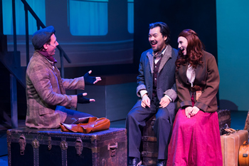 Rumors swirled that one Romanov daughter, Anastasia, had escaped. Many pretenders made claim to be the surviving heir to the Russian throne and were dismissed by the Dowager Empress. But ten years later, a young woman, Anya, would make a most convincing case that she could be Anastasia. The musical tells Anya's story. In addition to a dramatic true history, Anastasia , which had a moderately successful Broadway run, was developed by a top creative team with music by Stephen Flaherty, lyrics by Lynn Ahrens, and book by Terrence McNally. Hillbarn Theatre's generally entertaining rendition offers two excellent performances, good singing voices throughout, and a fine overall production, but it lacks the consistent energy expected of a top musical. A most compelling feature of the musical is the complexity and believability of the central character. Although the handlers, Dmitry (Brad Satterwhite) and Vlad (Alex Hsu), cynically interview prospective pretenders to present to the Dowager as Anastasia, Anya is special. As an amnesiac, she has no verifiable back story, and Anastasia's memory loss having survived the trauma of her family's extinction is plausible. As the enterprising men prepare Anya, she sometimes reacts with a sense of connection to events from Anastasia's past and even summons familiarity, perhaps randomly, with some aspects of the Grand Dutchess's 17 years of life. Of course, the technique that Dmitry and Vlad employ is akin to the very real and controversial practice by therapists of recovered memory technique often used to dredge up suggested sexual abuse. Along the way, Anya often feels a fraud, but other times believes she may be legitimate. Jillian Smith portrays Anya deftly. She excels with her lively dramatic interpretation, depicting vulnerability, genuineness, sensitivity, and when needed, backbone. Vocally, her stage musical singing style fully satisfies. One area for improvement is in the closing number to Act 1, her insightful and reflective solo "Journey to the Past." Although she delivers it well, her microphone should be amped up to give the song more heft. The score serves the piece well. The music is in a pleasant contemporary style with a blend of Russian themes and an excerpt from Swan Lake for a nicely designed ballet interlude. The lyrics effectively drive the narrative, and the songs are mostly short so that they do not disrupt the dramatic sense of the play. The action briefly shows the life of the royal family and their being rounded up for execution. Skipping to Dmitry and Vlad's scheming, they stuff Anya's head with relevant information, train and rehearse her for her role. Escaping Russia, they arrive in Paris for the desired audience with the Dowager Empress. But a dark shadow follows them in the person of Gleb (Coleton Schmitto), whose father had been a member of the execution squad that murdered the Romanovs. A magnificent Judith Miller plays the smallish but vital role of the Dowager with consummate skill. She is loving as the nana to Anastasia as a young child; imperious to sycophants and promoters; and desperate as an old woman grasping for any connection to her obliterated family. Having seen her only in non-singing roles like her astounding performance in August: Osage County, this reviewer was surprised to find that Miller also has a powerful alto singing voice as demonstrated in the sad, wistful "Close the Door." Although Act 2 redeems Act 1, the first act is somewhat flat. Danger abounds during the Revolution and its aftermath, but the threats are not very palpable in the play. Fortunately, Act 2 set in Paris contains more inflections and vitality, starting with the lively song and dance "Land of Yesterday" led by Countess Lily, lady-in-waiting to the Dowager, played by the vibrant Jacqueline de Muro. Director Catherine Weidner ensures that production values meet the needs of the musical. Staging is simple, but detailed back wall projections (Steve Muterspaugh) add depth, while active lighting (Pamila Gray) and costumery (Nolan Miranda) provide richness to the scene. Dance, movement, and live orchestration enliven the proceedings. Anastasia runs through December 29, 2024, at Hillbarn Theatre, 1285 E. Hillsdale Blvd., Foster City CA. For tickets and information, please visit www.hillbarntheatre.org . |