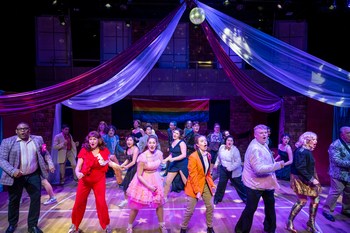 That sequence of hateful discrimination, clandestine plotting by parents, and an uprise of support beyond the borders of the homophobic town became the inspiration for Bob Martin and Chad Beguelin to pen The Prom, with Matthew Sklar contributing the music and Beguelin the lyrics. Their fictional version inserts into the narrative four narcissistic Broadway has-beens who decide that saving a little lesbian in Edgewater, Indiana ("whether she likes it or not") could just be the trick to resurrect their doomed careers and to put them back into the limelight of the Great White Way. And while they proclaim emphatically that it is not about them, the town, the girl, and all of us know that of course it is–and that becomes the key source of the musical's fun. Sporting stage presence and command almost as large as their hyper-inflated egos, four hilarious and talented actors unabashedly parade their self-import on the Lohman Theatre stage as these Broadway failures. They are joined by a large, enthusiastic cast to stage a highly entertaining, heartwarming The Prom by Foothill Music Theatre. Former marquee superstars Dee Dee Allen and Barry Glickman have just opened and closed on Broadway in only one night. They learn the harsh truth of their major flop from their agent Sheldon Saperstein (an affable John Mannion): "It is not just the show, it's you two ... You're not likable." Two of their stage pals have shown up for what they hoped was a celebration. They have their own woes to share. Trent Oliver is so down in his own Broadway luck that he has just accepted being casted in a non-Equity tour of Godspell. Life-long chorus girl Angie Dickinson is finally hanging it up after twenty years of Chicago, bitter having never received the nod to fulfill her dream of playing Roxie Hart. As they bemoan the bad reviews and their shared demise of failing careers, the four find out about Emma Nolan in Indiana who is being blamed for ruining prom for everyone just because she wants to bring her girlfriend. In Emma the four see possible salvation, singing with pumped-up determination, "This is our chance to change the world, one lesbian at a time" ("Changing Lives"). Arriving in Edgewater just as the sympathetic principal Tom Hawkins (Thomas Times) is appealing to the PTA to change its decision to cancel the prom, the troupe of thespians invade the tense meeting with their own singing/dancing version of pomp and circumstance, to the embarrassment of Emma and the aroused resentment of the entire town. But in the publicity-hungry eyes of this quartet, the show must go on. They proceed to wreak havoc and hilarity as they attempt to force the prom to be reinstated for out-and-bullied Emma and her girlfriend Alyssa Greene, closeted daughter of the gay-bashing PTA president who is determined there will not be such a prom. Leading the charge at the PTA-meeting fiasco is first Dee Dee doing all she can–but totally unsuccessfully–to declare in a bombastic blast of false denials, "This is not about me." Annmarie Macry is wonderfully believable as this Broadway diva who is used to being in the spotlight. Displaying with every uttered word a ballooned opinion of herself, Dee Dee is the real Broadway McCoy, with a singing voice that time and again belts notes that trumpet with convincing clarity and conviction. Every time Dee Dee enters a scene, it is as if she expects immediate acclaim and applause; but all we can do is laugh while also enjoying her astounding vocals. Not to be ever upstaged by his co-star, Barry does not just enter a room, he flutters in with full flair and fancy. Twirling his hands in the air while simultaneously fluttering his eyelashes, Barry never fails to pump and pop every available muscle of his hips as he struts about the room. With gowns of flopping silks, six-inch heels that glitter, and dramatic poses dying to be noticed, there is never a doubt that Barry is an out-and-proud old queen. But as he gets to know Emma and to discover they share quite a bit in common–including parents who kicked him out of the home–Andrew Ross' Barry increasingly brings deep-felt heart and caring that belie his surface-level flaunt and flurry. His Barry also sings impressively, with grit and gusto, spark and spunk–always selling his songs and eventually proving to Emma that there is a real human being inside that flamboyant facade. As part of this fearsome foursome, Jason Mooney's Trent takes it on himself to use his Godspell background to teach Emma's gay-bashing classmates a thing or two. With spirited vocals and personality he leads his fellow touring cast in a delightfully campy number, the stage filling with hippies waving scarves and singing, "Time to make some better choices, drop the hate, raise your voices; Love thy neighbor is the one to trump them all." While Trent tries to change the hearts of Emma's classmates, Angie takes it on herself to instill in Emma some courage to speak her truth to the world. Employing some of the Fosse hands, footwork, and pizzazz that she learned during all those years of Chicago, Michele Schroeder's Angie sparkles and shines, showing Emma some "Zazz." For her part and amidst all the hysterics and hubbub of her Broadway advocates, Samantha Rich's Emma often seems to be the only calm one–even the only adult–in the room, lyrically singing to herself with natural and flowing notes, "Just Breathe." Even as kids and adults alike ridicule her and accuse her of being selfish, Emma does not want to make a big scene. As she beautifully sings to Alyssa, "All I wanna do is dance with you ... all it takes is you and me and a song." But that chance does not happen easily. Even girlfriend Alyssa disappoints Emma in a major way, with Madelyn Davis-Haddad intoning Alyssa's heartrending self-confession, "You're not yourself; you're not what she wants; you're someone in-between" ("Unruly Heart"). Both young actresses portraying are exceptional in their abilities to engender genu