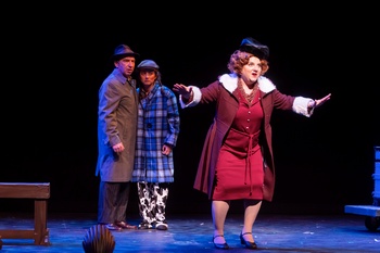 The musical debuted on Broadway in 1959, enjoying a highly successful but not historic run. Gypsy was nominated for eight Tony Awards but won none. Yet it is viewed by most critics as one of the finest musicals ever written and by several influential ones as the greatest musical written up to that time. Several Broadway revivals have followed, most recently in 2024-2005, starring Audra McDonald, who has won the most Tonys of any performer and received a nomination for this one. It must be daunting to step into the legendary shoes of many of the greatest and most iconic actresses. Among others who placed their stamp on the role, Ethel Merman created Rose for the stage, and Rosalind Russell starred in the movie. Palo Alto Players has enlisted Caitlin Gjerdrum as Rose, and she is absolutely stupendous. First of all, Gjerdrum has the pipes, with power to spare. She blasts away buoyantly and optimistically on composer Jule Styne's Everything's Coming Up Roses," in which Rose gives encouragement to her no-talent daughter Louise (Whitney Hisako Moore), who would become Gypsy Rose Lee. Among lyricist Stephen Sondheim's brilliant formulations, this song not only conveys Rose's need to dominate but plays effectively on her name. Rose also reveals her ambition in Some People" in which she notes that a sedentary life is okay for others but not for her. Gjerdrum brings compassion as well in the hopeful and beautiful Small World." Rose has a long, warm relationship with their act's managing agent, Herbie (Ray D'Ambrosio), and in the song she notes all of their complementarities which make them a fine couple. Despite the fact that Rose is single-minded, she possesses facets that make her complex, interesting, infuriating, and even sympathetic. And though she is manipulative and determined, she does have her boundaries, but in desperation they can be broken. Gjerdrum mines Rose's depths giving an acting performance that equals her singing. She dominates the stage and the people around her, emphatically dismissing those who don't share her views. The musical contains other memorable tunes, such as the daughters' catchy anthem Let Me Entertain You" and the experienced strippers' advice to Louise You Gotta Get a Gimmick." The strippers, Tessie Tura (Kristina Nakagawa), Mazeppa (Chloë Angst), and the aged Electra (Barbara Heninger) who can barely move around, also provide some of the best humor in the show. If there are weaknesses in the musical, they reside in the book, written by Arthur Laurents. The run time exceeds three hours, so it seems a little bloated, particularly for a contemporary audience. In addition, much of the plot focuses on how the vaudeville material that Rose creates is dying. The performances of those show acts feel dated and drag. Gypsy is a big musical in many ways. It is lengthy; it has a large cast; and the action plays in a number of locations. The Palo Alto Players' production, directed adeptly by Janie Scott, manages the bigness and is quite entertaining. Singing is generally good, while acting is uneven. The dance highlights include June's (Samantha Borthwick) performances for the act and Tulsa's (Ralph Shehayed) practicing in hopes of getting his break. On the creative side, particular kudos go to costume designer Jenny Garcia and scenic designer Kevin Davies, both of whom confront numerous changes and come up with appealing solutions. Gypsy runs through September 21, 2025, at Paolo Alto Players, Lucie Stern Theatre, 1305 Middlefield Road, Palo Alto CA. For tickets and information visit www.paplayers.org. |