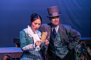 In Ada and the Engine, now in production at The Pear Theatre under the direction of Miller Liberatore, the facts concerning Babbage's innovations and Ada Lovelace's contributions are accurate history. Playwright Lauren Gunderson has crafted plausible exchanges between those two as well as their relationships with Ada's mother, Lady Anabella Byron, and others. The result is an engrossing biography that spans time in more than one dimension. One surprise to some is Ada's lineage. She was the only legitimate child of George Gordon Lord Byron, the esteemed Romantic poet so often linked in the triumvirate of Byron, Shelley, and Keats. Ada's mother was Anabella, who was distinguished as a philanthropist, educational reformer, and abolitionist. She is also said to be the only woman that Byron didn't charm, and he abandoned her for Greece only a month after Ada's birth. Ada would never know her father, and as one aspect of Anabella's severe treatment, Ada wasn't even shown an image of him until she was an adult. Because of Lord Byron's capriciousness and mental illness, Anabella forced Ada away from artistic pursuits and into mathematics, which turned out to be a fortuitous fit. The mother's only goal in the play is depicted as wanting Ada to marry into a title, but enjoining her to attend one of Babbage's soirees had the opposite effect. Instead, she found an outlet for her prodigious mathematical talent as Babbage's protégé and in many ways became his equal. Later, as they looked to establishing a firm to promote the unrealized engine, Ada even proposed herself as the overall boss. Angel Lin portrays Ada, who was sickly from youth and had a troubled relationship with her mother. Lin's portrayal is of a young woman who is independent yet cheery–cheered by being able to pursue mathematics. Yet the gravity of her father pulls her. In reading his poetry, she taps her heart to the rhythm of the syllables and even embraces the fusion of technology and arts by deeming Babbage's engine to have a beating metal heart. Lord Byron had died at age 36, and anticipating Ada's own brief existence, Lin speaks rapid-fire and enthusiastically as if the character is trying to cram as much into life as she can. Urgency and initiative drive her. She distinguishes herself by translating a scholarly paper in mathematics from Italian and adding notations that exceed the length of the paper. Her insights into the engine's possibilities lead her to conceptualize computing functions well beyond what Babbage had considered. Ada derived that any symbols could be coded into zeros and ones, her favorite being musical notation. The binomial system applied to computer data starting a century later codes as she conceived. Although Ada and Babbage had disagreements on concepts and development, only once was their personal and professional relationship almost fractured. That resulted from a resolute Babbage wanting to publicly point fingers at the government for not funding the development of the engine. Otherwise, David Boyll's apt depiction is of an affable, sometimes bumbling, but socially progressive man, though in some cases, he did wish to share less credit than he should. Maya Kapur's Anabella is adeptly played as sour and uncompromising. One might be a bit surprised that Byron would have married someone of that sort, but perhaps his lack of discipline and ultimate betrayal of her contributed to her unpleasantness. Like any parlor-room drama, the success of Ada and the Engine relies on a taut narrative and good acting to succeed, and so it does. The one plotline element that does feel a little clumsy is the add-on closing scene in which the deceased Ada and her father can finally commune in the afterworld. One acting issue of note is that several actors do not project their voices well, and from the more distant seats, some are too faint to be consistently understandable. And while Kapur and Boyll use English accents, Lin as Ada does not. Taken as a demonstration of acting, her characterization is very sound, and she does show breadth of emotion when appropriate. Yet, her vocal quality, accent, and gesticulation contradict the Englishness of her character. To some patrons, like my wife, that may not matter. And in the final analysis, Angel Lin and the play deliver a worthy result. Ada and the Engine runs through December 7, 2025, at The Pear Theatre, 1110 La Avenida, Mountain View CA. For tickets and information, please visit www.thepear.org. |