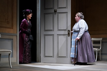 The 15-year interval between Nora's departure and necessary but unexpected return takes us back to the Helmer home, where Anne Marie, the all-purpose housekeeper/nanny, nearly gets the wind knocked out of her actually seeing that the former mistress of the house, whom she also cared for as a child, has become a sophisticated and impeccably attired woman of the world. Anne Marie is no mush-mouthed pushover and uses curse words that would have had the show closed by censors and moralists in Ibsen's day. Nora, now a successful author of women's books (written under a pseudonym), has come to face her ex Torvald, who never divorced her, to file belatedly, as she is afraid of blackmail, prison time, and financial ruin. Torvald initially doesn't even recognize Nora, and when she explains her plight, he refuses to help her and exits hastily. Their youngest daughter Emmy barely remembers her mother and is politely cool at first, then more emotional, and has none of the ambition Nora has had. Torvald and Nora share the last moments of the four-scene, 90-minute, intermissionless play, where all the family dynamics are sorted out. You'll need to see it to see if Nora leaves with what she came for. Stage and screen veteran Pamela Reed is a very good fit for the role of Nora, even though her first scene with Laura Kenny as Anne Marie goes off track, as director Abraham has Nora breaking the fourth wall in a sort of Thornton Wilder's Dolly Levi style. The dynamic Reed and the invaluable Kenny have such great chemistry that I could let the quirky directorial choices slide. Ms. Kenny, the cherry on the sundae of many past Seattle productions, brings to mind such great character actresses as Thelma Ritter, Marjorie Main, and Shirley Booth, yet with her own special mix of sweet and sour, soft-spoken yet rambunctious life force. Michael Winters is sublime as the self-torturing Torvald. The actor even finds some drolly underplayed humor in the role, which makes us realize he isn't just the stuffy, patronizing boor he was in the original play. Khan Doan gives a spirited, wistful air to the role of Emmy, whom we see clearly as someone Anne Marie and Torvald have raised, and raised well. Abraham's direction is too static and airless for much of the play, despite the cast's top-drawer performances. Scenic designer Carey Wong does an ace job with the icy, sterile and colorless interior of the sitting room (with only four chairs to sit in), which was a rather over-decorated mess as described by Nora in terms of what's now gone (i.e., everything). Deb Trout's costumes capture the just before the turn of the century styles beautifully, and LB Morse's lighting design is subtle and austere enough. Original music and sound design by Obadiah Eaves are notably good. A Doll's House, Part 2, through April 28, 2019 at Seattle Repertory Theatre's Leo. K Theatre in Seattle Center, Seattle WA. For tickets or information contact the box office at 206-443-2222 or visit them online at www.seattlerep.com. |