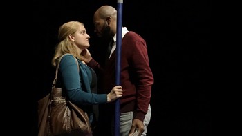 In Meredith Dayna Levy's new comedy, Coupler, it seems that romantic fantasies actually make us stronger, or at least more focused, confident and outgoing, in the way we prepare to meet Mr. or Miss Right. (I'm separating fantasies from pornography, which only seems to make strangers rude. But that's another story.) It should be pretty to easy to set up a hypothesis for the experiment, e.g., romantic fantasies make you better at "putting yourself out there," in a more prepared manner. And in this case, our study follows six or eight Londoners, all of marriageable age. You may have heard of the "Missed Connections" page on Craigslist, where you can send out a description of someone you saw on mass transit, or anywhere, really, and maybe that person remembers you too. And then you get married and live happily ever after. Coupler, currently being produced by Tesseract Theatre, is not about Craigslist, but it is about mass transit and missed connections. Christopher (Andrew Rea) meets his "manic pixie dream girl" (Rachel Bailey, as Sadie) on a London tube train, becomes smitten with her, and then spends the next two years or so trying to bump into her again. (Like all manic pixie dreamgirls, she is exuberant and impulsive, and spends most of the play after that first appearanceappropriatelyas a figment of Christopher's imagination. But she'll reappear eventually, in a way that delightfully ties everything up at the end. And I don't mean to sound surprised, but this is also a very uniformly strong cast, which has occasionally been a problem for Tesseract Theatre in the past. Director Katie Palazzola also appears on the long, narrow "stage" with Bridget McDonald, playing a pair of amateur, panhandling ukulele players, singing covers of appropriate songs as other riders, including would-be lovers, get on and off the train. Anyway, there's a mystery over who will find love and who will just stumble in and out of awkward encounters, as a semi-mystical announcer (crisp and lightly absurd Amanda Brasher) calls out the stations and the passage of time, and even the states of mind they go rattling through in the London Underground. It's all breezy and furtive and funny. Although (being about people in their 20s or maybe 30s) it's also a lot about young men at loose ends, behaving irresponsibly, and young women who are constantly surprised about it. The through line of the story is tidy without being pat, generally focusing on Christopher's roundabout writing career. And that's how he meets Emily (Anna Hecht), through his publisher's assistant (Bre Love), and also how Emily meets Glenn (Darrious Varner), through his sister Samantha (Annalise Webb). The wordplay in their private scenarios is witty and elegant, taking us on a ride that is surprisingly smooth. Coupler, at Tesseract Theatre through September 24, 2017, in the .ZACK performance space, 3224 Locust Street (just west of Compton, and north of SLU). For more information visit www.tesseracttheatre.org. The Players: Cast: Artistic Staff: |