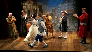 But two of the performers actually rise above the challenge, seeming to exist with one foot in the ruffles and flourishes of Restoration comedy reimagined as a production of the real-life Juliusz Slowacki Players, back when they performed in St. Louis in 1933. The other foot, for John Bratkowski and Jane Paradise, seems firmly planted in some catty-corner subjectivity, as the play goes on. (He plays a hapless dogsbody; she, a merry widow with a string of dead husbands.) And we get a sort of double-vision from their distinct brands of absurdity and the subtly observational level of each of their performances. Some clever person coined the term "presentism," to apply to a show like Hamilton for becoming a smash (in part) by placing modern black actors in Freedom Hall; or for a movie like The Help, which cleverly inserted white women into the Civil Rights movement. In this new "presentism," director, translator, and company founder Philip Boehm inserts some random black guy (the delightful Eric J. Connors who, like everyone else on stage here, happens to be an Equity actor, or an Equity candidate) into the Polish-American Slowacki cast, in the midst of curtain-up. But, gamely adopting the characters of Dyndalski and Śmigalski, he blends in perfectly. And then (two hours later) at the very end, we're returned to the (even more) racially divided St. Louis of 1933, but with a genuinely uplifting, period-appropriate bit of verse dialog, to suggest a more enlightened sensibility. Along with Mr. Connors' presence, it helps a lot that the shiny new Kranzberg Center of Arts is located on the site of an old, abandoned Woolworth'syou can even see the name emblazoned in brass on the curving, maroon terrazzo out front. But those are just the (literary and architectural) framing devices. Local favorite Whit Reichert adds fine physical comedy as one of the stern old men, along with the dryly melodramatic John Contini, each warring against the other till an inevitable duel over a shared wall. Benvenuto Cellini once wrote that, "after a certain age, men go mad," and that's the role both of these storied performers have here. Of course any theatergoer can instantly guess that if there are two senex irati, there must also be at least one pair of adorable young lovers, to make the senexes more irate. And in this case, they are played by the ne plus ultra of adorable young actors, Caitlin Mickey (as Klara) and Pete Winfrey (as Waclaw). They manage the centuries-old commedia like they were born to it, with her cartoonish emergency stops, his credulity, and her incredulity, and his bold, noble looks, which erode in an instant to callow immaturity. I won't waste your time discussing the story, which is purely an excuse to get a lot of charming silliness up there on the stage. But there are two quite good plot twists near the end (before the re-awakening to 1933) that restore your faith in the Restoration all over again. Sweet Revenge, through October 22, 2017, at the Kranzberg Arts Center, 501 N. Grand. For more information visit www.upstreamtheatre.org. Cast (in order of speaking in the play): Production Staff: * Denotes member, Actors Equity Association ** Denotes candidate for membership, Actors Equity Association |