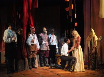 Here, though the acting quality is sometimes very good, the light plot (and music) is almost non-existent. We are kept in a general sameness of illumination (and atmosphere) throughout, which becomes quite dull. Different scenes that are played between lovers, through a wrought-iron window screen, are indistinguishable from one another in appearanceregardless of which two lovers occupy the inside or the out, and regardless of what time of day it is, and regardless of any other dramatic conditions suggested by the script, or modern flight of fancy. Likewise, there are no spotlights, no twilights; no blue-tinged nights; no dramatic little playing areas, isolated in the dark; nor golden sunsets or pink sunrises or emerald forest glens either, as far as the filters and photons are concerned. You can say that William Shakespeare didn't have any of that either, but we know from historical accounts that (before electricity) jars of colored liquid were sometimes employed up along the sun-side of outdoor theater walls, to enhance the mood. St. Louis Shakespeare has never been very big on lighting effects, though it certainly hasn't stopped them from putting on some fine shows: this season alone Is He Dead? and Titus Andronicus were very nicely brought off within the same constraints. And I don't mind skimping done by smaller, newer companies, who invariably have fewer lighting resources. But this group's been around over 30 years, in one form or another. Anyway, here you get an opportunity to see Shakespeare's "lost play," in this case the Royal Shakespeare version, originally co-written by John Fletcher and "re-imagined" 400 years later by playwright Gregory Doran. It's an unhappy romance, a tale of good and evil styles of youth in love, set in Spain in the year 1610, and shows the way that one style tempers the other. And it certainly looks and sounds like Shakespeare, and may even be a little more clear and to the point, with the modern polish of Mr. Doran, and the direction of company founder Donna Northcott. Cardenio is played by Erik Kuhn, better known as a fight directorand he's coming along nicely as an actor, too. Cardenio is pressed by the duke into service as a companion to his lusty son Fernando, played by the very enjoyable Jason J. Little. Fernando squanders the love of beautiful, gentle Dorotea, played by the excellent Lexie Baker. Larisa Alexander is highly admirable as Cardenio's worried mother, and Jeff Lovell and Colin Nichols are quite good as fathers of Fernando and Luscinda, who must also endure her own trials of romance with this splendidly awful Fernando. She's played by the very touching Shannon Lampkin. Kevin O'Brien shows continued polish and acumen on stage, here as Fernando's noble-hearted brother; and the supporting players, as servants and townspeopleand even grazing sheepare focused and strong. It's not a very pleasant story, nor one with any great insight or moment of good triumphing over evil, but evidently Mr. Shakespeare felt the need to crank out just one more. It seems like, outside of Mr. Little, Ms. Baker, Ms. Alexander, and Mr. Nichols, everyone else just needs to push a little harder, in lieu of other atmospherics. Of course, it was also the first Sunday of the run, and everyone would be exhausted after a week of final dress and tech rehearsals before opening. Still, there are examples of fine work from virtually everyone on stage, including Shane Signorino, admirably sharp and clear as a gothic priest and later as a rough shepherd. But when the basic elements of stagecraft are not at your disposal, and even the great Shakespeare himself shows signs of disinterest (in terms of plot construction and verbal acrobatics), it falls upon the actors to work even harder to evoke an atmosphere. Cardenio, through October 15, 2017, at St. Louis Shakespeare's Ivory Theatre, 7620 Michigan Ave. For more information visit www.stlshakespeare.org. Cast: Artistic and Technical Personnel: |
