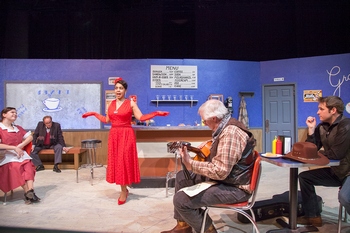 First though, in the interest of full disclosure, I should also tell you about my connection to the director of this new production, Sam Hack: we (and his wife Marilyn) studied under the same remarkable college drama department chairman in St. Louis, though not at the same time. And perhaps predictably, his sense of stage style and precision in orchestrating this play's taught interlocking parts matches mine, and rings true to my own roots, at least. That favorite college professor went on to chair the theater department at the much larger University of Michigan in Ann Arbor. I'm sure he'd be proud of this new staging. You may already know that playwright William Inge also knew Tennessee Williams in the latter's own college days in St. Louis where Inge taught, at another local university, halfway across town from ours. Both Inge and Williams went on to become Broadway playwrights and masters of poetic desolation in everyday American life, Inge's plays hewing toward his own roots in Kansas, while Williams tended toward the South. So let's get on board (at last) for this newest Bus Stop. Seeing it at the Clayton Community Theatre, I suddenly realize why you need a fascinating, troubled Marilyn Monroe (from the 1956 movie), or in this case the deeply affecting local actress Britteny Henry, who's fascinating too, though perhaps more sustainably so, as Cherie. That's the "nightclub singer" from Kansas City, and Ms. Henry captures all the plainspoken sexuality of the role, combined with a natural, countrified bemusement, to balance things out and win us over, as she lingers over a life-changing decision. She also gets a big, revealing musical number in a sprawling variety show, while a gaggle of travelers are trapped in a snowed-in diner not too far from Topeka, Kansas. While Picnic may be more purely "Ingean," in terms of its own particular atmosphere, Bus Stop is probably the better play: it has more indelible theatrical elements, more conflicts and interrelationships, more fine speechifying, and a more visceral, immediate sense of danger. And it has a second act that puts all other second acts to shame, sweeping everything up in a Kansas tornado of frustration and desire. Half the characters in Bus Stop have lost someone, or everyone, or everything, and the other half can't quite figure out what to do about it. Picnic has more wistful, on-stage poetry, but Bus Stop forces Inge and his characters to their greatest heights. Michael Bouchard is the handsome lunk-headed stranger here (there's one in Picnic too) and the always-splendid Erin Struckhoff is this story's no-nonsense small-town Kansas matron (in this case, running the diner where it all takes place). Like Hal in Picnic, Mr. Bouchard is appropriately twangy and loud but somehow still quite likable, as a brash young Montana rancher. Joe O'Connor is deliciously classical, and self-loathing as the alcoholic professor Dr. Lyman; and Lucy Sappington has perfect girlish confidence and naturalism as the teenage girl he slowly draws under his spell. Picnic may be more abstract or Chekhovian, but Bus Stop has that great American sense of the highway running through it, confounded by a fierce storm, stranding a group of people who are passing through, or simply passed byor both at once. It's as if someone asked Mr. Inge to "write another Picnic," but instead he came right back with something more modern, divorced from small town life, where people could easily get lost in their own shadows, drifting along without any roots at all. Unexpectedly, all of them are caught together here, by forces greater than themselves, and coming under stark examination. Through February 11, 2018, at the Washington University South Campus, 6501 Clayton Road (just east of Big Bend Blvd.). For more information visit www.placeseveryone.org Cast: Crew: |