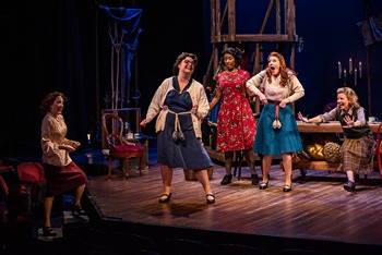 Nancy Bell directs this great new play at the Grandel Theatre as part of the "In The Works" series at Shakespeare Festival of St. Louis. And through sheer character development, worked-up by first-rate actresses, both tragedy and comedy glide gently to completion. Michelle Hand plays Maggie, wife of an enlisted man who served as the director of the (mythical) Oberon Theatre, set here before the war. There are lots of St. Louis references by and for St. Louisans. In fact, it almost seems like a lot of bending-over-backwards for a flattering sense of place. This is one of only two small complaints I had about this otherwise heartwarming new show. On the crowded "plus side" of the ledger, there seems to be an endless hall of mirrors inside Ms. Hand's soul, and one easily gets lost in Maggie's fish-out-of-water struggle. It's 76 years ago, and she steps up to direct Shakespeare's "Henry Cycle" on behalf of her absent soldier husband, for a three-hour version of the War of the Roses. But there are no men available to cast. She proposes a solution in a brainstorming moment with Ida, the company's costumer, played by the noble but housewifey Jacqueline Thompson. Ida actually has a plausibly great local backstory for a theater person, coming from The Ville neighborhood, a small area that was home to surprisingly big talents including Josephine Baker, Chuck Berry, Grace Bumbry, Arthur Ashe, Sonny Liston, and more. (Most white characters in Into The Breeches are assigned more generic neighborhoods for 1942, like Carondelet or Dogtown.) Also on stage for this initial discussion, as the unlikely voice of reason, is the company diva. And while any of the talented women in this cast could work themselves up to playing a diva on stage, the one who actually has the full credentials to do it is Kari Ely. And she fills the role as Celeste. Remember, it's 1942, and St. Louis did not have a dozen serious, robust theater companies back then. So Celeste gets all the leading lady roles at the Oberon Theatre, including Juliet, even when she's older than Juliet's Nurse. Ms. Ely is languid, and large of gesture and spirit, and marches in spiritual lockstep with Vera Charles, Ursula Mossbank, Helen Sinclair, and Norma Desmond. So then Maggie proposes the distaff Falstaff and the rest to the Oberon's producer, played by a delightfully retrograde Gary Wayne Barker. As Ellsworth, he effortlessly hits every single note in presenting the world of wealth and privilege in an era before any kind of civil rights. In fact, he seems to exist half the time in a country club setting, at golf or tennis. But gradually, in his first scene, you will note the vacuously smiling wife to his right: the seemingly squandered actress Katy Keating. In the past, we've seen her as a wildly hormonal lesbian high school student, a cold Prussian narrator of bizarre fairy tales, and more. But here she is, smug as a Christmas goose, doing nothing but smiling in her powder blue ensemble (from Scruggs, Vandervoort and Barney, no doubt). Until, of course, she gets cast in the play. Ms. Keating's Winnifred is joined by other military wives, June (pixilated beauty Mary McNulty) and Grace (heartbreaking Laura Resinger). All of them embark on an exploration of self and Shakespeare and the world, and can never go back to what they were before. Then there's Ben Nordstrom, as the one draft-age male in the show, the stage manager, disqualified from the military as "a swish." Mr. Nordstrom is a buoyant presenceyou should have seen him as J. Pierrepont Finch in 2014, or as the one person on stage who "got" the Breughelian nonsense of Big River in 2010. And here he tells convincingly of being humiliated by the draft board. But the mad gay struggle to get back into the world (in defiance of it) hadn't quite germinated on opening night. It's impossible to say anything bad about Mr. Nordstrom, and maybe that's the problem right there. I'm fairly certain the Midwest didn't use its Bible Belt to whip him growing up, to turn him into a monster. It's probably unreasonable to expect he could just whip that card out of his sleeve as a result. And maybe we don't need to look down into that crevasse any further. Plus, times have changed (and this is odd, since the play is from this year) and we don't automatically laugh when a man sweeps on stage in a big ballroom gown. Not in the larger cities, anyway. Once those referenced moments of historical pathos are dispatched, he's perfectly fine. But it bears mentioning that the theater is entering a time when emotionally crippled people seem to be disappearing. (Ms. Thompson does very nicely with her own character's civil rights struggle in the playit's different for Ida, with a large community of support, I suppose.) Anyway, it's a lovely show, and anytime someone can make Shakespeare fully relevant, and poignant, and funny to modern audiences, you just have to take your hat off to them. Into the Breeches, through November 18, 2018, at the Grandel Theatre, 3610 Grandel Square (across from Powell Symphony Hall), St. Louis MO. For more information on Shakespeare Festival St. Louis' "In The Works" series, including the upcoming A Most Outrageous Fit of Madness and A Thousand Natural Shocks, visit www.sfstl.com. The Cast: Creative Team: * Denotes Member, Actors Equity Association |