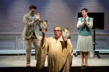 Imagine you're at a popular downtown comedy club, but one that's carved from a single, great pearl, and you have your set by Josh Smith, at the Jewish Community Center in Creve Coeur. Imagine further, two eager-to-please angels as sidekicks, and you have delightful Michael Cassidy Flynn and Amanda Wales. Mr. Flynn goes up into the audience to announce commonly asked questions to the Deity, and Ms. Wales recites for Him His list of ten new commandments, which forms the spine of the show. Through all of this, Mr. Knoll bounces terrifically between the Borscht Belt and the Kuiper Belt, from jocular to the other-worldly, in a roughly 90-minute stand-up. The steady stream of societal observations and modern sensibilities may not shock you, of course, dear reader. But there might be some nice old Orthodox retirees in the "J" audience who could be mildly discomfited by the occasional metaphysical re-framings of the story, and of the Universe, and even the relationship of Jehovah and Jesus. Plus, the questions of whether or not God is somehow a seriously deranged person, or whether there's something greater that's even more flawed beyond Him, are two of the hulking, philosophical Mount Everest's that suddenly swing into view in Mr. Knoll's peripatetic decalogue. It's not a pandering sort of show. Unless you count the angels' awestruck pandering to Mr. Knoll as God. Of course, I'd love to tell you all the best jokes from the script (and there's a long list of good and even great ones). But why ruin it? Suffice it to say, there apparently really was an "Adam and Steve," and God is actually pretty tired of all of our cumulative, libidinous behavior. He finds the Book of Job to be the funniest in the Torah, but is still astonished by the faith of Abrahamas are we all in this unexpectedly poignant retelling. Once again, intellectual humor gets its full due, as God is amazed to find that simple human obeisance outstrips even his own faith in Himself. It's just terrific, and I can't help wondering if Mr. Knoll gives such a dazzlingly articulated performance each and every single time (he probably does). But the large number of young people in the audience at the performance I attended, both smart and enthusiastic, couldn't have hurt his performance either. So just in case, let's hope everyone, young and old, sees that it's clearly a new day for the "J". An Act of God, through December 16, 2018, at the Jewish Community Center, #2 Millstone Campus Dr., St. Louis MO. For more information visit www.newjewishtheatre.org. The Players (in speaking order): Production Staff: * Denotes Member, Actors Equity Association |