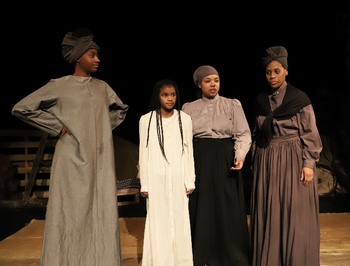 These are (mostly) new short scenes, developed in rehearsals by directors Dennis Corcoran, Madeline Finn, and Michelle Zielinski, and their work rises to the dimensions of great theater again and again. It all begins (and ends) with a homeless young man singing quietly as he goes through his day, pushing a grocery cart full of bags and bottles. But, in between, there's a poetic, outspoken chorus of women representing the free-thinking slave Sojourner Truth at various points in her life in Isabella Bomefree; a heart-wrenching, multi-generational playlet called Letters, written by Derek Patterson (which first premiered on stage on the campus of nearby SIU-Edwardsville) centering on what black parents call "The Talk" with their sons; and Ravensbruck, named after the German concentration camp in World War II, where doomed white women struggle to remember who they are at the last possible moment. These collected vignettes may just be everything that goes through a young homeless man's head during the course of a day. But they occupy the same space, of nobler aspirations we remember from experimental theater growing up. What does it mean, then, that this "theatre of raw idealism" is back, both relevant and compelling? Is it because the world is now run by mobsters, and the daily news has become a trigger-warning for artists? It feels very fresh, but strangely familiar to a baby boomer: black men, and black women, and later European white women from the past, declaring their right to be free, and their power, and even their forgiveness of their captors. How did we end up back here, all over again? LaVell Thompson, Jr. plays the homeless man who (we will learn) ended up here on the streets after the 2003 invasion of Iraq, a war that was the subject of Black Mirror's previous production, Bengal Tiger at the Baghdad Zoo. And, come to think of it, maybe we already have gone through a 1960s-style upheaval, in some different configurationbut perhaps we've been so anesthetized by a lack of political oversight, and the giddiness of our modern lives, that we barely knew it, till this show came along. This show will wake you up in unexpected ways. And the directors have instilled perfect confidence in each performerthere are only two actors I recognize as having a lot of experience, from past shows: Don McClendon (the regal "tiger" in that Iraq war play) and Jane Abling, a delightful face that pops up now and then in local theater. Near the beginning, she's seen gasping for breath on stage, before appearing in a range of roles later on. As befits this style of theater, she's in crisis and fighting for her life in her first appearance. Mr. McClendon is the dad in the multi-generational Letters, about black families and their sons. And Sherre Ward is compelling as the mom who's resolved herself against domestic terror. The 90-minute show's tiny moments of "gasping for breath" each have different titles, representing stages of entrapment and resolve. They're fine punctuation marks between the more traditional scenes. And it all sparkles with ennobled human vision. Of Human Kindness, through December 15, 2018, at the Kranzberg Arts Center, 501 North Grand Blvd., St. Louis MO. For more information visit blackmirrortheatre.com. Cast (in their various one-acts, in alphabetical order): Directors: Dennis Corcoran, Madeline Finn, Michelle Zielinski |