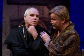 In David Davalos' 2008 prequel, the prince of Denmark is just a dude: polite, well-spoken well-mannered, well-dressedbut completely unable to commit to a field of study, at what is now the Martin Luther University Halle-Wittenberg (founded in 1502). But he still hasn't declared a major, in his senior year, class of 1517. And, in this local premier at Upstream Theater, he's more John Cleese than Laurence Olivier, as played by the ever-so-slightly bonkers Casey Boland. Of course, it's not the first riff on Hamlet (which dates back to about 1599). In Tom Stoppard's Rosencrantz and Guildenstern Are Dead, we get a mostly "backstage" version of Shakespeare's tragedy. And don't get me started on "Gilligan's Island." But, really, Hamlet was not considered "the greatest play ever written" until the 19th century, so it's probably a healthy thing that we're finally having a little fun with it. In Wittenberg, Hamlet's onstage college professors are ready to oblige, being as different as night and day: fussbudget-faithful Martin Luther (the wonderfully fraught Alan Knoll) and ultra-skeptical Dr. John Faustus (the seductively whimsical Steve Isom). Caught between their opposing philosophies, the young prince will go back to Elsinore with a head that can't stop spinning. There are glimmers of the famed soliloquies to come, and genuinely funny wordplay, scattered throughout, making this a worthy predicate to the great tragedy. But Wittenberg is really more about Luther and Faust than Hamlet, so thank goodness director Philip Boehm got two charming actors to play these giants of spiritualism and rationalism, who embark on a couple of embroidered debates on their favorite topics. The thing that sparks their two-hour and change clash is the heretical claim by a yet another giant of history, the Polish astronomer Copernicus, who claimed that the Earth is not the center of the Universe, and not even the center of our own solar system. And why is that important? Because if Earth (and mankind) is not the most important thing, at the Center of All Things, then maybe God's just not all that into us. So, you know, maybe we ought to start seeing other people, in other churches. Or, no churches at all. Even Martin Luther has to accede that things could be better, as the Church of Rome is busy selling forgiveness, in the form of "indulgences," to cover their own dinner and drinks. Luther's working on his 95 treatises during the play, with surprising results. So, like King Lear or The Tempest, both the heavens and the earth are in upheaval. And (perhaps equally important) there's a St. Pauli-girl wench, played by Caitlin Mickey, who doubles as Faust's distant, cool inspiration Helen, and triples as a pretty terrific Virgin Mary. It's easily the funniest play from Upstream Theater to datethough just as challenging, and mentally exalting, as we've come to expect from the group. Wittenberg, through February 10, 2019, at the Kranzberg Arts Center, 501 North Grand (at Olive), St. Louis MO. For tickets and information, visit www.upstreamtheater.org Characters (in order of appearance) Offstage * Actors' Equity Association ** Actors' Equity Association *** United Scenic Artists Local 829 |