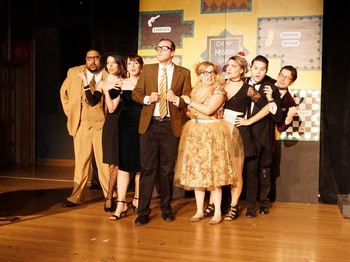 What was missing was the stage itself, or rather, the Theater, as a nurturing influence. As written and directed by Katy Keating, this parody version of the movie (originally written by Jonathan Lynn) becomes a mad hodge-podge of a story and the frantic actors who tell it, and (at last) the audience itself, in the intimate confines of the Chapel on Alexander. All that live energy has a salutary effect on the source material, transforming it into something very nearly magical. But, for that matter, Noises Off never worked for me either, as a film. Farce is like a highly competitive sport: you just have to be there, amidst the shiver and twitch of the horses. And of course, typically, a farce has four or five onstage doors that slam loudly at very precise moments, as if Fate itself were slapping you in the face, again and again. And there's a lot of money at stake and, oh, a dead body or two along the way. Admittedly, there's only one door in Classic Mystery Game, but it's on wheels, and twirled and run around and occasionally barricaded, as if it had multiplied into eight or ten or twelve doors by the time we're done. A blackmailer (Reginald Pierre, elegant in voodoo doctor garb) is dispatched, along with various servants and passersby. And, since there's blackmail, there is (at least implicitly) a lot of money at stake. So, voila! It all begins with onstage warm-ups for the actors, dressed in Liz Henning's very faithful rendering of the movie's iconic costumes. Then the audience picks cards (which are each face-down) for a victim, a weapon, and a location, as in the original board game. Michael Cassidy Flynn plays the strident British butler who also conducts the drawing. Then there's just a long, steady stream of very nicely choreographed sight gags and groan-worthy laughs. The climax comes much later, when Mr. Flynn is forced into a madcap recounting of at least three different, complex, potential solutions to the murder(s), based on which cards were (allegedly) chosen at the outset. It's a breathless, Herculean effort as he explains each different solution to the murder(s) with increasingly blustery panic. And having a live actor do it right in front of you makes it a lot more exciting, like Ron Liebman, jumping up and down in the big final speech of the original production of Neil Simon's Rumors on Broadway. Among the highlights in Classic Mystery Game are about a dozen laconic laugh lines from Ellie Schwetye as Mrs. White, who's been widowed at least four times, and Rachel Tibbetts as Ms. Peacock, whose panicked screams are handy signposts along the way to mayhem. Maggie Conroy is Miss Scarlet, with an outstanding "come-hither" look that may mean murder, and Will Bonfiglio gives a much-needed overhaul to the role of Mr. Green, the jittery homosexual of the original movie. It's a mad conglomeration of most of our brightest young performers, throwing their youth away in a ridiculous extravaganza. And, in the darkest days of winter, you almost certainly won't find anything better than that. Slightly Askew Theatre Ensemble's Classic Mystery Game, through February 16, 2019, at the Chapel on Alexander, 6238 Alexander Drive, St. Louis MO. For more information visit www.slightlyoff.org. Performance Ensemble (in order of appearance): Production Ensemble: |