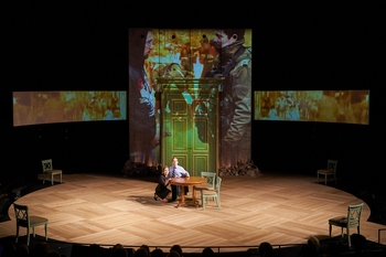 An often gleeful, conspiratorial tone fills the air in Oslo, the story of secret diplomacy to end an intractable war. It's also director Steve Woolf's farewell production as Repertory Theatre of St. Louis Artistic Director, after building the Rep into the most prestigious theater in town. Here, the backdrop of Oslo is familiar, chaos and bloodshed in the West Bank and Gaza Strip, but Mr. Woolf's own personality seems to set the tone: boyish and endearing, while juggling great issues. J.T. Rogers' 2016 behind-the-scenes drama won the Tony Award for Best Play in 2017. It begins as the story of angry men, steeped in irony over the unbreakable standoff in the Middle East. But even as confrontation softens into to humanity, the irony remains, blossoming into fine comedy as the two and a half hour long play darts around the globe. For, in 1992, as much as Israelis and Palestinians had grown anguished over the territory won 25 years earlier, there's something they find very tempting about a new round of peace talks, in secret, in far-flung Norway. Fierce dogmas have led them to impasse, but their personalities will gradually mesh, due to the unorthodox circumstances. The pre-existing U.S.-led talks seem to have gone flat. Perhaps "the thrill is gone," as blues artist Roy Hawkins once sang. But a Norwegian sociologist has gotten the reckless idea to de-contextualize the negotiations with different participants, and the unintended effect makes it all seem like an illicit love affair, instead of a neverending snarl-fest. Jim Poulos is charming, even musical, as Terje (the sociologist) and his outsider status serves everyone nicely. The clandestine nature of secret talks, away from the oppressive tone of sanctimonious American diplomats (whom we'll meet later), gives new life to these meetings. In effect, it's as if they're all cheating on their wives, though in this case it's their own governments and alliances they're sneaking out on. A lust of betrayal seems to propel the talks all the way through, first against Washington, and later a betrayal of these diplomats or that handler, and eventually of their own leaders, bringing the two sides back together, year after year. They prevaricate with their own chieftains on the phone or in person, or don't even bother to consult with them at all, as their joint futures are all being hammered out in Scandinavian rectitude. That's how we're reminded that there's something even deeper in men, beneath the Jewish or Islamic dialectics of sin and redemption. In Oslo, it's more of an escape from a dead-end situation. Kathleen Wise plays Mona, very briskly leading us through the talks, and looking grim when multi-media projections show news footage of West Bank and Gaza bloodshed. Rajesh Bose is delightful as the Palestinian representative, far more worldly and sophisticated than the Norwegians expected. And though he seems to be a devoted family man, his apparent need of betrayal sends the first batch of Israeli negotiators packing, opening the way for Uri Savir (Ben Graney) as a young diplomat with a dash of gangsta in him. He, in turn, is betrayed by his own superiors, who send in the taciturn Joel Singer (Jim Shankman) near the end, to make sense out of the broad generalities the others have slowly worked out. "But is it funny?" a friend asked me recently, after reading my review of the previous show on the Rep's main-stage, Alabama Story, which she enjoyed very much. I was sure I'd made it clear. But if there's any doubt, yes: Oslo has lots of laughs, at very regular intervals. The other funny thing is, it gives us hope, that by playing on the weakness of men, we might strengthen all mankind. Oslo, through March 3, 2019, at The Repertory Theatre of St. Louis, Loretto-Hilton building, The Loretto-Hilton Center for the Performing Arts, 110 Edgar Rd., St. Louis MO. For more information visit www.repstl.org. The Cast (in speaking order): Production Credits: Additional Production Credits: |