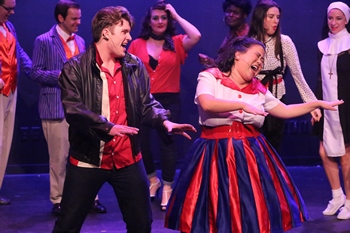 The strong 2007 stage musical is based on the forgettable 1990 film, and received its first post-Broadway regional production at New Line in 2012. But somehow, this revisiting in 2019 seems much brighter and funnier, directed again by company founder Scott Miller along with co-director, Associate Artistic Director Mike Dowdy-Windsor. Cry-Baby is stuffed with Waters' familiar stock characters, a story of delinquents battling squares in 1950s Baltimore. This new production is a pitch-perfect comedy from start to finish. It ripples with laughter and pulses with exciting songs by David Javerbaum and Adam Schlesinger, under the musical direction of Nicolas Valdez and Marc Vincent. The libretto, adapted from the film, is by Mark O'Donnell and Thomas Meehan, who also co-wrote the book for that other stage musical adaptation of a Waters film, Hairspray. Grace Langford is wonderful (and a bit of a Tracy Turnblad) as Allison, the nice girl who desperately wants to be bad. And Caleb Miofsky is excellent as the brooding boy who falls for her in this collision of the sacred and profane. Allison's grandmother Cordelia, as played by Margeau Steinau, creates an invisible maze of white picket fences all around her granddaughter in order to keep Allison out of trouble (at least, for as long as possible). Most of the delicious comedy comes in song, in the clash between hyper-conformists and slouching rebels. And The Whiffles, a high school glee club, provides a lot of the fodder for laughs in their numbers. They're contrasted against "the Drapes," the bad girls, who also block Allison's interest in Cry-Baby (Mr. Miofsky). His nickname comes from a Rosenberg-esque back-story involving his leftist parents who were executed for burning down a boot factory during World War II. The singing is great, which is a given in any New Line show, and the acting is confident and indeliblewith an unexpected quality of frantic ad-libs in the group scenes, adding a manic, spontaneous tone. Of course, in a comedy, not all of the singing should be great. Aj Surrell is unexpectedly madcap as one of the girls in love with our anti-hero. Like Jo Stafford's alter ego Darlene Edwards, she has a slightly unsupported voice, and just-next-to-on-key tonality. Her big number with Whiffles leader Baldwin Blandish (Jake Blonstein), "All in My Head," is a soft-shoe type masterpiece (without any literal soft shoe) in which we celebrate John Waters' long lineage of seemingly syphilitic scene-stealers. Ms. Surrell is a tad surreal, and Mr. Blonstein is wickedly normative. Somehow, all the subtle cues of a John Waters film are lovingly reincarnated into this grand stage production, and it doesn't seem like a sign of weakness at all: Marshall Jennings does some of his best work here, as Dupree W. Dupree, in theatrical kinship with Waters' "Motormouth Maybelle" from Hairspray, while outstanding comic actor Todd Micali fills a variety of authoritarian roles with ease and attention to detail. New Line dynamo Sarah Gene Dowling brings all the unapologetic weirdness needed as "Hatchet-Face" Malnorowski, with an indelible stink-eye that traces its lineage back to the cross-dressing actor Divine. Cry-Baby runs through October 19, 2019, at New Line Theatre, Marcelle Theatre, 3310 Samuel Shepard Drive, St. Louis MO. A lit, fenced, guarded parking lot is just across the street, for all you squares. For tickets and information, visit www.newlinetheatre.com. The Cast: The New Line Band: The Artistic Staff: |