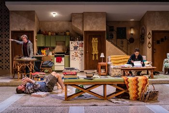 But it's a certifiable comedy, as directed by Meredith McDonough, reaching its own kind of heights through a combination of homemade courtroom drama and The Odd Couple. The play, which ran on Broadway in the 2018-19 season, pits two very literate men against each other, over the unlikely subject of proofreading. It's funny, hammering away at the difference between literal truth and the literary kind, considering that whole religions have spent thousands of years trying to split the difference. But The Lifespan of a Fact achieves the same soulful, transcendent results in just 82 minutes flat. Once again (to paraphrase Garrison Keillor, who was speaking of public radio), theater is like church for people who don't like going to church. We could go on and on about how the "falling man" is like the "fallen man." But it wouldn't be nearly as much strange fun as this play, based on the book by John D'Agata and Jim Fingal. In this local premier, Griffin Osborne plays Jim Fingal, the youthful fact-checker at a modern magazine who must verify the all the dates and nouns (and, just for fun, the adjectives, too) jammed into a highly evocative essay written by temperamental writer John D'Agata, played by Brian Slaten. Perri Gaffney is elegantly ruffled as Emily Penrose, the magazine editor (for Harper's Magazine) who's caught in the middle. And it's all thrashed out against a publishing deadline that looms like a cliff. A gruesome self-sacrifice lies at the center of it all, artfully singled out by John, in a piece of writing originally titled "What Happens There": a sixteen-year-old who may have spoken to John minutes before, by way of a suicide-prevention hotline, has climbed over a protective barrier at the top of a tower and thrown himself off over the Las Vegas strip at just past sundown. And in that moment, facts and theories become meaningless. The one act play barely touches on the higher-than-usual rate of suicide in Las Vegas, but more notably drives us to the hushed limits of reason by the show's curtain. No one can fully understand those final personal moments, and that's what steals the meaning of it for suicide's survivors. As far as modern drama goes, this play is brief and relatively hard-hitting. But it's also unexpectedly life-affirming. The other impressive thing is that it's hard to like any of the three characters on stage, at first. The big mechanical set by Arnel Sancianco gets more love from the audience in the first half-hour than the actors. It swallows and disgorges furniture and one whole apartment, just like the publishing industry does with charmingly worded ideas. But publishing in the modern age is like some gangster trapped in a desperate shootout with all the free content on the internet, and nobody's about to give an inch. In the desperate crossfire, the strange miracle of these performers (and this director) is that you end up liking them all very much. Maybe it helps to loathe the editing process. But the insistent moral anguish that comes with having to question every word, negating the tragedy at hand, develops its own murderous weight, in a personal rumination made all too public. The Lifespan of a Fact runs through November 10, 2019, at The Repertory Theatre of St. Louis, Mainstage, Loretto-Hilton Center for the Performing Arts, 110 Edgar Road, St. Louis MO. For tickets and information, visit www.repstl.org. Cast (in speaking order): Production team: |