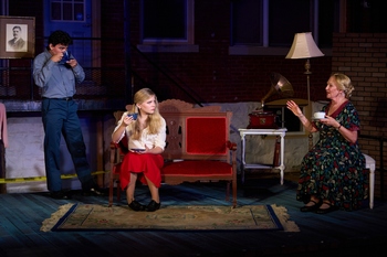The first blow to the head for the audience, and it's not entirely unpleasant, comes from Brenda Currin as Amanda Wingfield. In the script, she says she stays up nights worrying about her children. But she is the least neurotic, least dragon-like, most genteel and practical-minded Amanda out of the five or six I've seen. Despite her relative lack of anxiety, Ms. Currin is outstanding as a faded Southern belle. In real life, the Tennessee Williams family moved up north from his maternal grandfather's very proper church home in rural Mississippi, to the filthy, crowded, industrial city of Saint Louis. The big childhood move for Williams came after the playwright's own Stanley Kowalski of a father got promoted from traveling salesman up to an administrative job at the nation's fourth-largest shoe warehouse. It was not a happy change of circumstances, partly because the father was home every night, and he was very different from Williams' mother. But on stage here the only thing that might drive the fictional Mrs. Wingfield's two fatherless children crazy is Ms. Currin's hyper-realism, at which she excels. She stammers a lot at the beginning of lines, trusting that the correct words will bubble up in her mind, sooner or later. We worry, time and again, that she is living through the Actor's Nightmare, there before us. It is bracingly spontaneous. It also drove me the tiniest bit crazy, too, as a substitute for the domineering attitude of the usual overbearing ogress in the role. The only downside (beyond the loss of familiar energy, and a lot of very particular melodrama) is that she is so nice that she makes her two children seem hateful in their scripted reactions, compared to the usual dialectics. Her choice is probably still artistically valid, even if Tom and Laura now look a bit more like the ungrateful children Regan and Goneril. Still, Ms. Currin reminds me of the great Geraldine Page, a master of discovery, in her work on film. But that same approach lacks straightforwardness here, and does not entirely comport with what we know of the real-life woman, Edwina Dakin Williams, and her exhausting chatterbox nature. That's seen afresh through the quotes of her son's friends, in Henry I. Schvey's evocative new book "Blue Song: St. Louis in the Life and Work of Tennessee Williams" (University of Missouri Press, 2021). Rather than rattled or runaway, Ms. Currin displays an exceedingly tentative but status-conscious mindset as Amanda Wingfield, with true grace and deference. You have to allow for artistic freedomit can't all be just cult or camp, right? Even if it has served as a monument to a very particular part of our history for a generation or two of theatergoers. But so much dynamism is lost, and the other actors here have virtually no obstacle to push back against from this Amanda. There's great audacity in being so "in-the-moment," but this is not the role for it. The other somewhat pleasant blow to the head comes from the casting of handsome Bradley James Tejeda as Tom, beguiling narrator and an anguished character in this memory play, which first debuted in 1944 in Chicago, before moving to Broadway the following year. Do handsome young men struggle as much to find success? It probably doesn't matterafter a settling-in period, we soon forget Mr. Williams himself, and with him the playwright's layers of awkwardness: his own anxiety, his Percy Dovebreath voice, and an utter lack of athleticism. (In looking at old YouTube videos of previous productions, I find that Tom is usually handsome but, as often as not, plagued with anxiety.) Somehow, Mr. Tejeda works through the curse of his own good looks, and his first and last monologues, delivered up on a black fire escape, are outstanding. However, there seems to be a lack of an almost feminine desperation in his demeanor, compared to other Toms. And when he should momentarily rise to become the equal of his oppressor, in his big outburst against this courtly and diplomatic Amanda, he inadvertently overwhelms her, coming across as too strong and hostile. (Speaking of the young playwright's desperation, in that new book, Williams is quoted as imagining that the skeletal urban fire escapes, like the one that forms the backdrop of this set by the always-inspired Dunsi Dai, might one day coil up and crush these helpless city dwellers in a snake-like grasp.) So if you will pardon an unpleasant gay aphorism: there are apparently "no fats, fems, or flakes" in the post (post) pandemic version of Tennessee Williams' world. Here, it's only muscles and jocks and guys-next-door (and I suppose you could lump in this particular Amanda Wingfield as a member of the ladies' auxiliary of the "no-flakes" division). It isn't transcendent, but works well enough, because Mr. Tejeda, and hunky Chauncy Thomas as the Gentleman Caller, are also serious, feeling, intelligent actors, like Ms. Currin. You might never know the difference, between this and the nightmarish life that inspired The Glass Menagerie, unless you too had lived through the bad old days, the truly hopeless times, in repressive St. Louis, or places like itwhere hating on the gays seemed the most popular pastime, after baseball, while your parents exulted in their own glorious self-imaginings. And of course (in the old days) the Gentleman Caller would never be black, because Soldan High School, where the three younger characters all went, was certainly not integrated in the 1930s. However, as a matter of honoring the utterly segregated black community here, color-blind casting seems like a very nice innovation in this case. Under the direction of Mr. Hohlfeld, each actor still manages to find some new form of the expected anguish and hopelessness to more or less fill out the shape of the play, in spite of his or her own natural assets. Elizabeth Teeter, as Laura, is the least revisionist: she's an Alice who never got through her own looking-glass, who never escaped the prison of her own reflectio