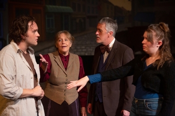 For Bloomsday, Jessa Knust directs rather mechanically, but it seems as though the script triumphs and a mystical Brigadoon is turned into a pretzel, where past and present are both independent of one another, and tangled-up too. The artfulness of the script makes up for a lot of unrealized character development. A young woman, Caithleen (Megan Wiegert), is caught in the grip of a kind of madness that runs in her family, where the future shifts awkwardly into view now and then. It's a gift that destroys its recipient. But when we first meet her, it's 35 years ago, and she's giving a tour of the sites immortalized in James Joyce's "Ulysses." She's about to meet Robbie (John Trotwood Moore), the impish younger version of this stiff, 55-year-old American, who has the opening monologue. The older Robert is played almost glibly by Jeff Lovell, which puts a lot of weight on everyone else to carry the romance. Things don't really take flight till Colleen Heneghan shows up late in act one as the older, warmer and wiser (and nuts) Cait. Thanks to her, the play begins to breathe, and everyone seems like a much better performer. Otherwise, the director seems to abandon the other three actors at emotional dead ends: young Caithleen should be fighting a much more palpable dread over being trapped in a fossilized town, and over her impending madness; and older Robert should rediscover, anew, his colossal exasperation at his younger self every blessed night. Mr. Moore does very nicely, but his Robbie cannot wrestle with the darkness in Caithleen. Ms. Heneghan seemed the most in-tune with the circumstances of the play and the workings of wonder, at this performance. Maybe she's just more interested in the complexities of forging relationships. And she's on stage a lot in act two, thank goodness. It's a bit dry, otherwise. The other three actors have their moments, but usually trade on simple awkwardness or a sense of withdrawal. But you're supposed to work around those obstacles to find ways to illustrate something about the character's inner workingsnot get stuck in them. (It is also important to note that we at TalkinBroadway and most production companies have a rule about not reviewing a final dress rehearsal, but that also happened to be the night set aside for critics in this case, due to social distancing rules at this venue.) When a time-traveling tour guide who's experienced in the emotional terrain finally shows up (Ms. Heneghan), after the first 30 minutes or so, Joyce's magical quarter of Dublin begins to come to shimmering life. Bloomsday runs through September 26, 2021, at the Union Avenue Christian Church, 733 Union Blvd. (just north of Delmar Blvd.), St. Louis MO. Masks are required, and bottled water is available in the downstairs lobby, off the stairs and elevator. For tickets and information visit www.westendplayers.org. Cast: Production Staff: |