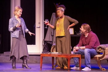 We rarely see Ms. Byers on stage these days, but in a big role like this she spreads her soul and gently carries you along, her Margie Walsh becoming more clearly defined by each shabby bargain with life, as she confronts the high cost of being one of the "good people." Without friends, her life would be a tawdry mess. And consistently, the actress seems to occupy the past, present and future of her moments on stage–often all at once, as she passes through them. In this exceptional production, Margie seems to cling to the recollection of a 1980s punk swagger and a steadfast South Boston rebelliousness. But all that teeters on stilts when she's confronted with the lavish new wealth of an old boyfriend on the other side of town. And teeters further, when she measures out the costs of her own special-needs daughter, when she can't find a job. It's a great role for a great actress, and a treat to watch. Liz Mischel and Stephanie Merritt make a hilarious, ferocious pair as Margie's friends in Southie, where the old neighborhood stories are retold again and again. Their senses of humor really shine as they cut each other down to size. Stephen Henley fights a sense of dry-land drowning, amidst their acerbic chat, as their bingo mate; likewise when (in the show's first scene) he must deliver some bad news to Margie, which she forestalls, by engaging in a furious stand-up comedy routine, reaffirming an old connection, in hopes of saving her job at a dollar store. On a purely visceral level (and this show has viscera to spare, thanks to director Bell), Stephen Peirick seems to be psychologically disemboweled, playing Mike, Margie's ex-boyfriend, torn to pieces by women at both ends of the socio-economic ladder: by Margie and by Mike's young wife Kate. The latter is played with nuance and a rising, genteel sort of wrath by Laurell Stevenson. All theater is about relationships: the kinds you want and the kinds you're stuck with. The "in groups," and the "what are you doing in my group" groups. Those dialectics play out constantly, and in hi-def, in this production. Finally, there's another reason this show gets done a lot, and it's not just because of the smallish cast or the minimal set requirements, which are raised to nearly iconic status by designer Josh Smith. It's also a masterpiece of one long humiliating class-struggle moment in American history that simply won't go away. Good People runs through February 26, 2022, at the Tower Grove Abbey, 2336 Tennessee Ave., St. Louis MO Reservations are advised. Masks are required, but vaccination is only recommended, and seating is not currently socially distanced. For tickets and information visit www.straydogtheatre.org. Cast: Production Credits: |