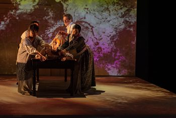 Playwright Charly Evon Simpson's 1840s medical drama is based on the lives of young Black slave women suffering from complications after pregnancy and from dozens of primitive surgeries for each of them after the fact. Adding insult to injury, about half of those pregnancies were caused by their white doctor himself. It's a stark nightmare–relieved at very regular intervals by visual poetry and also by the characters' genuine warmth and deep humanity toward each other–under the wise direction of The Black Rep founder Ron Himes. The postpartum patients are suffering from fistulas, which respond poorly to simply being sewn up on a primitive operating table using silk thread and (eventually) lead sutures. Chinna Palmer is heartwrenching as Philomena, a patient, lover, and nurse in the practice of a doctor who is based on the real-life surgeon J. Marion Sims of Lancaster County, South Carolina (Philomena is also a personal slave to the doctor's wife). After many painful failures, the doctor ultimately hits upon an historic medical breakthrough, with ironic complications of its own for everyone involved. Jeff Cummings is excellent as that slave-owning doctor who believes he is the world's first obstetrician/gynecologist, here revealing an authentic mix of the scientist and egomaniac. And of course, all of this is long before modern sterilization procedures; and morphine (though available) is used only sparingly on Black patients. The discovery of ether is only just now appearing on the medical horizon, in this country. You might suppose the German doctor Josef Mengele had a similar self-romanticizing streak in the 1930s. But playwright Simpson and actor Mr. Cummings scarcely brush against satire at all in revealing this semi-fictional doctor's monomania. In his clinical disregard for his patients we realize again the many medical trials of Blacks in America. For a white viewer it is humbling. The dynamic among the 1840s slaves is resigned and naturalistic. There's also plenty of common sense and even romance of an unexpected gentleness, with Brian McKinney as a suitor of Philomena's, ensnared by her beauty and her plight (he also plays a haunted husband in the first scene outside a grisly surgery). Alison Kertz is the doctor's genteel, occasionally mad wife: like a pre-Civil War Queen of Hearts in a brief but shocking outburst in act one, and later spoiled but also strangely touching in act two. Patience Davis is kind and gentle in a poetic scene, explaining the art of homemade perfume to Ms. Palmer's Philomena. Christina Yancy, Taijha Silas, and Alex Johnson are strong as slaves who likewise endure many a bleak and failed gynecological surgery. Theirs is an existential drama, with only endurance and memory to see them through. Ryan Lawson-Maeske is starkly real, as always, in a pair of very different roles on stage, one of which broaches the darkly satirical. But thank goodness for the warmth and long-suffering nature of the slave characters themselves. Otherwise, it almost goes too deeply into my brain: the persistent use of lighting projections (by set-designing super-team Marjorie & Peter Spack) cuts right into our subconscious. And director Himes reveals a bit of welcome style where the white slave-holders are concerned. I must confess I have a weakness for a dash of directorial flourish, which is nicely satisfied here. In the same 19th century context, lighting designer Joe Clapper's use of modern footlights heightens the very subtle flavor of melodrama, reinventing it into a present-day sensibility, especially in the scenes between the doctor and his wife. Overall, it's a show that operates on multiple levels, with great precision. The Black Rep's Behind the Sheet runs through April 3, 2022, at the Center of Contemporary Arts, 524 Trinity Ave., just east (then south) of the University City gates, St. Louis MO. Ample parking in a lit garage right across the street. Bring proof of vaccination and a photo ID; and masks are required at all times. For more information visit www.theblackrep.org. Cast: Production Staff: * Denotes Member, Actors Equity Association ** Denotes Member, Society of Stage Directors and Choreographers, Inc., an independent national labor union |