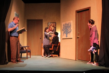 Both comedies get lots of laughs from the collision of evangelicalism and intercourse. Each has that courtly Southern Baptist twang to sanitize varying degrees of torment and desire. And each play is set after the death of a major character. But baby boomers may find they've been laughing in the wrong places in the final moments of Hand to God. Sordid Lives ultimately embraces the duality of body and spirit, whereas Hand to God pits them one against the other as a kind of bloodsport, to help us cross into another school of Modern Theater entirely. Make no mistake: a top-notch cast, under the outstanding direction of director Andrea Urice, holds the conflict between genres together till a sort of unmasking of story types is revealed in the end. It's just not the framework you were expecting, when the gloves finally come off. I say this because the audience on the night I went seemed put-off by the denouement, which is probably exactly the way it's supposed to work. "Look back in puppet-anger, young man." Then, a moment later, enthusiastic applause at the curtain call made up for the wary reaction to the final monolog. Askins' play centers on very modern teenagers, and it lands a lot more darkly than Sordid Lives, for a variety of reasons. See it, to be reminded of how much the rules have changed for a newer generation, just as we saw in the post-modern Peanuts-based play from 2005, Dog Sees God. In a faster-paced, more comical vein, Hand to God transmogrifies to become an "angry young man" play for the 21st century, where life-and-spirit dualities remain to be resolved. Much of that is played out through a puppet named Tyrone who becomes monstrous on the hand of its putative owner, Jason. The pain of losing love ones and of being bullied, and perhaps even all the inevitable concessions that our parents have made along the way, once again reinvent themselves for a new generation. It's still "mostly funny." But it lands an unexpectedly heavy blow at the end. Is it a statement about mental health? Or a lecture on good and evil, from a woefully inexperienced teenager? Either way it's an angry young man, I suppose, thrashing around, looking for a way out. As one does. There is admirable character development, and a very good psychotic role for actor Mitchell Henry-Eagles (as Jason), who suddenly seems terribly under-used, and (inexplicably) far more youthful than he was in the title role in 2016's seminal Trash Macbeth at ERA Theatre. But as Southern as it is, Hand to God takes a hard turn away from the kind of uplift we find in Del Shores' cult comedy. Robert Askins' hands are cloaked in puppets, but the puppets (as you may have already guessed) speak some pretty raw truths in a Cypress, Texas, church basement. In fact, maybe it underestimates Hand to God to compare it to Sordid Lives at all, as Mr. Askins' 90-minute play is more broadly about about shifting youthful identity and not at all about the now-familiar anguish of growing up gay in a repressive environment. The repression here is to force unsteady youth to find a quiet way to carry on with the status quo, when so much has changed in their world, and the path ahead seems totally undesirable. We know right away, in Sordid Lives, that the elderly Peggy has died in a scandalous tryst, tripping over the artificial limbs of her married lover. The mystery in Hand to God takes longer to unravel, and ends up with a startling tablespoonful of teenage vinegar at the very end. Colleen Backer remains the queen of laconic humor in St. Louis as Jason's mom, and Eric Dean White is affably, visibly humiliated as Pastor Greg, again and again. The set, by Patrick Huber and TheatreMarine Productions, nicely changes back and forth like pages in a book. And Josh Rotker and Phoebe Richards are excellent as Jason's longtime Sunday school classmates. As Timmy and Jessica, they may not seem as grounded in decency as most church kids. But they are as real as it gets in every other respect. Hand to God runs through April 24, 2022, at the Gaslight Theatre, 358 North Boyle Ave., St. Louis MO. For tickets and information visit www.stlas.org. Cast: Production Staff: * Denotes Member, Actors' Equity Association |
