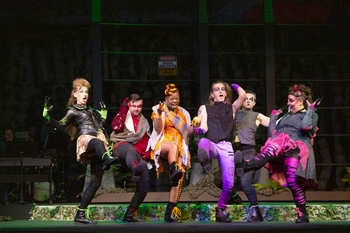 The authors (Mr. Pailet wrote the music, and collaborated with Messrs. Norbitz and Wargo on the book and lyrics) did not anticipate the recent ferment over transgender rights in America, when their work premiered at the New York Fringe Festival in 2010. But if their aspirations had been any higher than lowly parody, they might have treated their characters with some particle of respect, or dimensionality, and inadvertently have created a fine modern musical that would speak to the matter through sheer decency and idealism. Sadly, Triassic Parq relies on a series of half-hearted penis jokes, in a colony of female dinosaurs. (In the first Jurassic Park movie, chaos ensues when some of the lab-generated dinosaurs develop male characteristics and go on to reproduce without human control.) Triassic Parq should have landed on the ash-heap of history, but gets a lavish revival here, under the direction of Justin Been. Indeed, if any dinosaur on stage here ever wonders if they might be a different gender, deep inside, than the one they were outwardly born to, that moment passes so fleetingly as to be inconsequential. Nor do any of them face any notable obstacle to changing sex. Nor do they bravely carry on with their heartfelt readjustments, demanding the world make room for them. In 2022, Triassic Parq already seems prehistoric at its core. Still, the cast sings very well, and gives us the last full measure of what is, essentially, a 90-minute comedy sketch. Rachel Bailey and Dawn Schmid are innocent girlfriend/dinosaurs, though one of them will suddenly develop a large comical phallus. And Tristan Davis is ideal for the power ballad idiom as a young velociraptor who must track down his origins. Michael Wells is a real trooper as the religious leader of the dinosaur park, with Laurell Stevenson a delight in several roles, including that of an exiled dinosaur with a hidden truth. Bryce Miller rounds out the cast as a comical "mime-a-saurus," with nice physical comedy throughout. Triassic Parq runs through April 30, 2022, at the Tower Grove Abbey, 2336 Tennessee Avenue, St. Louis MO. For tickets and information visit www.straydogtheatre.org. Cast (in order of appearance): On-Stage Band: Production Staff: |