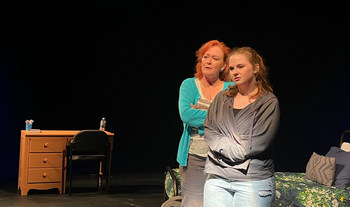 The girl in question has been concentrating on the "adult" variety of relationships since she was a teenager. Adorable spitfire Rhiannon Skye Creighton plays Lex, who has become an internet porn star against her will. It's now a few years after she has been publicly exploited in roughly ten sex videos online, with one of those getting a quarter million views, in this fictional account. Young women with similar problems join a lawsuit against porn websites, but then ask her to leave the suit, because of Lex's voluntary sexuality. The results of their collective criminal and civil cases (recited with grisly aplomb by Lex's mother, played by the splendid Donna Parrone) are both realistic and blood-chilling. Until then, Lex is in and out of psych wards, in this fast-paced story, having become an American untouchable. There are modest, evocative lighting effects and a Virgin Mary statuette that miraculously survived being hurled at a drywall panel at the matinee I saw. Artfully done flashbacks mesh with nerve-wracking scenes between Lex and her mother, who serves as the stubborn soul of stability. Like that Virgin Mary statuette (that wouldn't break), Anna, the mom, somehow survives dozens of emotional impacts. Though you can see the aftershock in her eyes. The action takes place on a startlingly empty black set, where a girl's brass bed, a small desk, and a nightstand are all huddled together, like some fetish of normalcy. Tesseract Theatre co-founder Taylor Gruenloh wrote the script, and very quickly the stage is invisibly festooned with Catholic guilt, familial conflict, and layers of grievances, under the thoughtful direction of Karen Pierce. Nearly every scene, till the last one, seems to end on a note of withering accusation, poetic longing, or the hint of pending suicide, as a challenge to her mother, or a plea for understanding, to her high school friend (played by the warm and pained Kelvin Urday). The whole show is meticulously great, and the upbeat ending will come as a thrilling surprise. Considering the grueling emotional content and the nation's inexcusable lack of privacy protections, you may wonder why anyone would want to go and see it. Art, here, imitates a twisted modern life that no one wants to acknowledge. But the play has something else that most lack: a fine madness that never fails to tantalize, thanks to Ms. Creighton–it's as if Hamlet were an all-too-liberated young woman from north St. Louis County, instead of the prince of Denmark. Is she crazy? Or just clamoring for a fulfillment that has devolved into something purely sexual? As with the madness of Hamlet, it becomes an impossible question. The Length of a Pop Song runs through July 17, 2022, at The Tesseract Theatre, Marcelle Theatre, 3310 Samuel Shepard Drive (about four blocks east of Powell Symphony Hall), St. Louis MO. Parking is ample, in a fenced, lighted lot, or on the street, at Leonard Ave., a block west of Compton Ave. For tickets and information, please visit www.tesseracttheatre.com. Cast Production Staff |