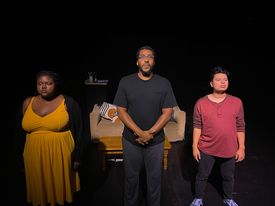 But what happens when the Dr. Jekyll of good communication meets the Mr. Hyde of good drama? When everyone is earnestly trying to understand one another, what is left to create tension or misunderstanding or grievance, or the awful fake hatred and reprehensible fake murders that spring from it, on stage? At last we find out, in a world premiere production (about a mass shooting in a public school) staged by the Tesseract Theatre Company at the Marcelle Theatre, of All That Remains. The 90-minute play by JM Chambers ends with three or four strong scenes. But it is a mostly doomed pairing: the unholy theatrical union of active listening and the unbearable suffering following a present-day mass shooting (plus some possibly unnecessary added suffering from a very sad pregnancy storyline). The acting is sometimes very good, but more often it is tentative and skin deep. There's a high-quality performance by Melody Quinn as Elaine (and there's also a character named Melody, a ghost from the mass shooting, played nicely by Nyx Kaine), and very fine work as well by Victor Mendez as the ghost of a murdered student. But otherwise, good communication stamps out good drama, even when the story is ripped from today's most horrific headlines. I can't wait to tell you how easily they could make it all work, because that's exactly what theater people always do after a show, boast about how they'd fix it. But in the meantime we can talk about the plot and characters under the very professional and nurturing direction of company co-founder Brittanie Gunn. The actors are generally not previously known to me, but they are invariably well intentioned, and each shows definite signs of talent. The Tesseract Theatre Company deserves well-known actors, with hard-earned nuance in their back pockets, and the whole map of the space-time that exists inside a theater rolled up in their souls. Here, only the spear-carriers show up, to fearlessly charge into the fray with an untested new show. It is regularly apparent they haven't fully pre-packaged or arranged their own emotions in a way that more seasoned performers might have learned over time. Likable stage veteran Sherard E. Curry returns to Tesseract Theatre with an honest sense of anguish as Gary, a high school teacher whose life has fallen apart after 15 students and five workers were killed in his school building in Nebraska. A fine passionate argument with his wife (Ms. Quinn) opens the play, sharply raising our expectations. But empathy, compassion, and active listening smother the drama at every turn. Too many scenes end with a hopeful promise for tomorrow, which is anathema to good storytelling. The playwright falsely signals, again and again, that we may fold up our programs and go home for the night, with each new commitment to healing and growing. Our finest actors would be eager to subtly f*** this up within each vignette, for the sake of the audience. Instead, every few minutes, Drama is merely the bug that's squashed against the windshield of good intentions, as polished communications skills come barreling at us, again and again, at a very sensible fifty-five miles an hour. How to fix it? Lots and lots of sound effects, to represent the inner torment of that teacher, Gary. Lots of sounds of gunfire, and even shouting and screaming, all through his scenes, and maybe even the visual addition of chaotic figures in the background, scurrying back and forth along with the subjective noise, nearly non-stop, to represent what's going on inside Gary's head, to heighten his endless living nightmare. Then you'd have yourself a play. And an exploration of the sometimes unbridgeable gap between good drama and good communication. All That Remains runs through July 31, 2022, at the Marcelle Theatre, 3310 Samuel Shepard Drive, St. Louis MO. For more information please visit www.tesseracttheatre.com. Cast Production Staff |