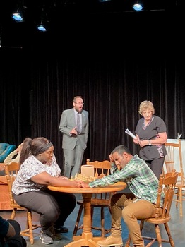 But don't be misled by the dramatic title: this murder mystery has a light, natural sense of comedy along with skeins of believable suffering, which create a gentle, pitiable feeling in a psychiatric ward in an unnamed city. The locked-down patients find themselves solving a crime amidst a series of rocky events, dashing their hopes of eventual release. From the audience, their borderline illnesses (partially controlled by medicine and even shock therapy) become pervasive and enveloping. And so the story, with its patients struggling to find balance despite their compulsive behaviors and regular crises, works its way into our consciousness–full of earnest naturalness and subtle, pained vulnerabilities. Locked Ward is set in 2003 and based on the playwright's own experience dealing with bipolar disorder ten years earlier. Phil Gill directs with deep compassion and several very nice whimsical flourishes. And though the show suffers from over a half dozen longish scene changes (of dubious consequence), it likewise forces us to rearrange our own mental furniture along the way. The characters straddle a fine line between realism and staginess. At a runtime of just under two hours, the relationships gather a tentative warmth, and the final goodbyes of the parting patients become touching. The ones who must remain soon discover entirely new mysteries to carry them into the future, as the lights go down. There are at least three good red herrings in the mystery and of course a dead body (Denise Mandle, due to some last minute re-casting). And each member of the ward staff comes under close scrutiny as possible suspects. The well-known local actor Jaz Tucker plays Doctor Blumenthal, taking nothing for granted in his meticulous performance as the counselor, confessor and chemist on this floor. He shows an occasional flare of exasperation and possesses maybe just a little too much knowledge about the victim, in an otherwise affable performance. Mr. Tucker's perfectly paced psychological articulation on stage seems a constant encouragement to the other performers around him, as to the scope and meaning of artistic freedom in the service of a role. I feel very foolish that I've never noticed him doing all this before. At the matinee I attended, stage manager Gwynneth Rausch did very well stepping in as a hard-nosed ward nurse, enlisted as a replacement for actress Lillie Weber, who's recently been diagnosed with COVID-19. As one of the patients, seasoned actor Ethan Isaac brings a light, haunted touch to the role of Glen, a former policeman with a drug dependency. His revelation that every crime contains its own inner logic adds a hilarious undertone in the backs of our minds, in this modern asylum. Because each patient here suffers from too much internal logic, perhaps. Uche Ijei seems confident and at home as the bipolar Eleanor, whose strange breakdown and exile becomes one of several points of high drama in the play. Stephen Thompson Sr. is excellent as Vladimir, a dour, anguished patient who embarks on a tenuous (but successful) comic partnership opposite Duncan Phillips, who shows artful restraint as an earnest but jittery Trekkie with OCD. And Jalani (Tamia) Hale is heartwrenching as Jill, whose depression (in 2003) is treated with electrical shock. Her attempted seduction of the doctor is eerily realistic. But don't let the diagnostics (or the treatment) lead you off the scent. Like any good mystery, the anguished testimonies of the various murder suspects are always 90% of the show. And in this case, good writing, direction and acting are a tonic for us all. Finally, like any great story, we are delivered to quite an unexpected place in the end. Locked Ward runs through August 21, 2022, at the Kranzberg Black Box Theatre, 501 N. Grand Blvd., St. Louis MO. For tickets and information please visit www.firstruntheatre.org. Cast Production Staff |
