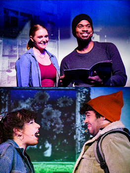 So it comes as a great surprise to see a kind of soulful fragility emerge from a quartet of young New Yorkers in a new production of 2008s Ordinary Days at Tesseract Theatre in St. Louis. A deep sense of romantic vulnerability pours out of a fine cast, led by director Elisabeth Wurm. Adam Gwon wrote the music and lyrics for the sung-through show, which is set in 2005. And there seems to be an almost storybook quality to that particular moment, though it was only seventeen years ago. There are rudimentary flip phones, but no dating apps on smartphones. Turns out the old face-to-face element, of just arranging to meet someone in a museum or a coffee shop, adds more to a relationship than a sheaf of racy photos. Oh, nostalgia. But there's not a drop of quaintness to be found in Ordinary Days, the first musical ever mounted by Tesseract Theatre, at the .Zack Theatre in Midtown St. Louis. It is 80 glorious minutes of hard-charging hopes and crashing romantic frustrations. Jacob Schmidt is delightfully effervescent as Warren, the SpongeBob made flesh, vainly attempting to hand out fliers on colorful paper to blank-faced passersby on a busy street. Lauren Tenenbaum is excellent as the feisty grad student Deb, who's lost her thesis notes, which are found by Warren, who's working as an artist's assistant. A meeting becomes inevitable. The many realistic backdrops on stage are designed by producer Taylor Gruenloh, showing video footage projected on a big screen. And music director Zach Neumann is 100% on point as the show's keyboardist. The sound mix is just right, for those sitting up close. However, one particular repeated light cue was persistently slow on opening night (or perhaps the actors sped up, hitting their marks early in performance, coming down from an upstage platform again and again). Michael Lowe and Brittani O'Connell are the sexy 30-ish couple. He (like Warren) is full of romance and idealism as Jason; while she (like Deb), is wary and territorial as Claire. Halfway into the evening, both couples find each other, after getting lost at the Museum of Modern Art: a setting that reminds us that discovering a harmonious shared outlook (on paintings, in this case) is fundamental to any lasting relationship. And I found myself wishing the play would never end when Mr. Lowe sang "Hundred Story City," a song of great longing. I was also struck by Ms. O'Connell's confession of prior heartbreak, at being an early widow, when she filled the stage with a seminal dread, at starting a new love all over again. The show consistently hits the sweet spot between youth and experience, and love and warinessarticulated in both song and performance. Ordinary Days runs through November 27, 2022, at the .Zack Theatre, 3224 Locust Street, just west of Compton Avenue, St. Louis MO. For more information please visit www.tesseracttheatre.com Cast: Piano: Zack Neumann Production Staff: |
