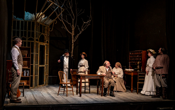 But this Vanya also has the ability to ruthlessly mock himself, and get laughs for it in the process. This strange, funny power turns gradually darker (mostly) in a show that speeds through two hours and forty-five minutes. Which is rather unexpected, because it seems shorter. And somehow, I'd rather be led through a mad, internal limbo by an actor like this than through a pretty little lie by anyone else. And the moments of discovery run fast and deep in this translation by pugnacious playwright Neil LaBute. Director Pileggi dusts off every Chekovian exchange like an archeologist combing through a Roman ruin, and even unearths what seems like a previously undiscovered Slavic sight gag in the very last moments of the show. If sight-gags can be subtle and tragicomic, I mean. Michael James Reed plays Dr. Astrov, the other half of Vanya's darkly comic duo on stage. Astrov winces in pain when told of a medical emergency at a provincial factory and has several grim medical insights, reminding us of Chekov's own past life as a late-19th century physician. In more colorful moments, both Mr. Reed and Mr. Pierson are wonderfully kinetic, inveighing against each man's sense of brutalized vitality. And each is desperate to love another man's wife, giving us just two of the myriad unrequited love subplots in a dour rom-com, filled to the brim with unrequitedness. Let's face it, the sheer number of professed heartbreaks here becomes subversively comic after a while. And yet! In the end, the final visual arrangement turns heartbreak on its head. Jennelle Gilreath Owens is the object of both men's affection, as Yelena: the ornamental, pre-Revolutionary symbol of the end-use of all Russian sacrifice (her lovely costumes are by Teresa Doggett). But she becomes less silly, and indeed mournful, as she spins her own anguished tale on Patrick Huber's dreamlike set. Like many of Chekov's characters, Yelena gradually rebels against her own apparent symbolism. Bryn McLaughlin combines heartache with intelligence and great pacing as Sonia, the other half of the work team (with Vanya) that keeps an old family farm running, allowing Yelena and Vanya's brother-in-law, Professor Serebryakov, to live comfortably in Moscow on the profits. Like the other main characters, Sonia seems to feel deeply miscast. It's a dynamic that emerges in Ibsen and Shaw as well, opening the door to much of 20th century drama. The vain and imposing professor is ably played by Greg Johnston, personifying the chaos that invades a September's harvest season, bullying or charming by turns. Local stage icons Eleanor Mullin and Jan Meyer play the nanny and Vanya's mother, respectively, and each combines sensitivity and authenticity with perfect economy. Michael Musgrave-Perkins is the kindly and laconic Telegin, the farm's handyman, bemused to be smitten with Yelena's beauty as well. The famous Russian play has troubling parallels to modern American life, where the rich city folk strip the value out of the lives of country people. And Astrov delivers presentations on the process of deforestation in the local region, presaging our own worries about climate change. (In the earliest form of Uncle Vanya, in an 1889 script, the doctor was the title character in a nascent work known as The Wood Demon.) Humanity in this show, even with all the many grace notes of humor, unfolds through all the things these characters don't have–or imagine they don't. Although, in this impeccable staging, Vanya's deeply Russian worry is unexpectedly given the lie in the end–by all the reassurance that quietly surrounds him, as darkness falls. Uncle Vanya runs through March 5, 2023, at the St. Louis Actors' Studio, Gaslight Studio, 358 N. Boyle, St. Louis MO. For tickets and information, please visit www.stlas.org. Cast: Production Staff: * Denotes Member, Actors' Equity Association |