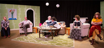 Or maybe it's just the spirit of the brainy actress Nicole Angeli, as Diana, in Albion Theatre's Absent Friends a play by Alan Ayckbourn. And, to a lesser extent, that of Diana's self-absorbed husband Paul, played by the equally smart Jason Meyers. In any case, both are ready to explode. Diana is pushing out against all her disappointments, before a her own cosmic cataclysm. But so is Paul, in his own way. And when the fabric of their own shared space-time can no longer hold against the strain, each will snap back down into a tiny singularity. And try to start all over again. I mean, neither one is the whole universe. He's not frogs, she's not chamber choruses, and neither one is that room in the Watergate Hotel where I once had a wild fling decades ago. But both are seemingly surrounded by frogs, and chamber choruses, and haunted by at least one wild fling mentioned in this relationship comedy, under the insightful direction of Robert Ashton. Oh, and it clocks in at just about two hours run-time, including intermission–which is probably another reason why it all seems so perfect to me. Absent Friends starts off innocently enough. Evelyn (Annalise Webb) is just putting her baby down for a nap, as an afternoon tea party is getting under way in Diana and Paul's tastefully "mod" 1970s living room (by set designer–and fight choreographer–Erik Kuhn). Ms. Webb's Evelyn is a gimlet-eyed, no-nonsense young mom who will score dour laughs throughout the play, after an unexpected, uninvited tryst with Paul in the backseat of a car: a brief, awkward, one-time fling which Evelyn did not initiate (and which is one of at least two oddly dated plot points in the play). Marge (Anna Langdon) is Evelyn's opposite, and Diana's overly helpful, overly sympathetic friend. Ms. Langdon employs the most arresting upside-down smile I've ever seen and wears a huge, ghastly 1970s monochromatic plaid dolly dress complete with matching black mini-vest (j'accuse, costumer Tracey Newcomb!). And like Gwendolyn and Cecily in The Importance of Being Earnest, she and Evelyn will politely smash around like bumper cars, against each other's notions of propriety and common sense. It's brittle and shocking and clever. But the show is mainly about intimacy, and how almost everyone needs it. And since it's a comedy, no one can quite respond to anyone else's preferred sort of intimacy in any meaningful way. Absent Friends is also (thanks to this director and cast) about how we trudge on in spite of it all. There are well-marked little narrative "entryways" into familiar types of stage speeches, as when Ms. Angeli begins a big soliloquy near the end in her "childhood yearning" speech. But each time, that "predictable" moment lands in a fresh new way. Evelyn and Marge form the women's "chorus," and the supporting men (John and Colin) have their own very different one, as well: each group presents its own messages, though not in literal song. Mike De Pope is thrillingly vulnerable as jittery John, Evelyn's husband, a hapless cat food sales rep. And Ben Ritchie is excellent as the gently grieving Colin, whose girlfriend passed suddenly (about a year ago). Mr. Ritchie shows a great flair for offbeat humor. Jason Meyers transcends his usual comic finesse to play an impossibly flawed Paul. He has completely rewritten his own life story mid-course to exclude his wife and children. And Mr. Meyers gracefully manages one of the most difficult feats for any actor on stage, turning rising laughter into sobs of grief. That comes near the end, as everyone's else's vain attempts at making a functioning social group come crashing down when, essentially, he's proven his point: that one should rather be a psychopath. Until he recognizes it's a hollow victory at best. So maybe there's hope for us, yet. Albion Theatre's Absent Friends runs through June 25, 2023, at the Kranzberg Arts Center, 501 N. Grand, St. Louis MO. For tickets and information, please visit www.albiontheatrestl.org Cast: Crew: |