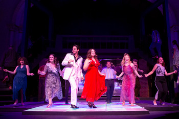 Yes, there is a disco light-up floor, and yes, there is a foil-mirror "drop" upstage to heighten that effect (thanks to set designer Josh Smith). And absolutely there is a monsoon of 1970s dance music, thanks mostly to the Bee Gees, with live music beautifully directed by Leah Schultz. But somehow only now we are beginning to unlock the secret to jukebox musicals. Evidently, it's whatever director Been and choreographer Hodges are doing behind closed doors in their alchemic rehearsals that gives Drew Mizell (as Tony), Sara Rae Womack (as Stephanie), and all their fellow castmates an astonishing degree of freedom, combined with their own ferocious self-discipline, to make you wish it was stagflation and post-Watergate and post-Vietnam, all over again. At the time, living through it all, it often seemed as bleak as the dark side of the moon. And there are still cringeworthy aspects to Brooklyn, New York, in this sanitized version of the film that make you glad we live in a more enlightened day and age. But the film's anguishing car sex scene is gone, and the harassment of a gay character (in the film's opening minutes) is glossed over, somewhere in the middle. Still, a quartet of "dese-dem-doze" Italian-American teenagers (and their families) make no apology for their frequent emotional explosions in their dialogue scenes. That rhetorical ferocity falls away in their meticulous live re-workings of the film's tribal dance sequences in a show originally based on the journalism of Nik Cohn. It was then adapted for the stage by movie producer Robert Stigwood, in collaboration with Bill Oaks. And the North American version was further adapted by Sean Cercone and David Abbinanti. (The original Broadway production was credited to collaborators Nan Knighton, Stigwood, Arlene Phillips, and Paul Nicholas.) But it seems like a lot of writers for a show that does most of its talking with its feet. Even the well-known disco songs are more literate than the dialogue. Part of the overall straw-into-gold transformation seems to come from the cast's confidence in knowing they have a perfect Tony in Mr. Mizell. This veteran of cruise-line entertainments does everything right, from splits all the way down on the dance floor to a wide cossack split all the way up in the air. And he does all the dirty work in between, of portraying a flawed character in a story that would otherwise be thinner than he is. Ms. Womack, as his dance partner, sings even more beautifully than she dances, which is saying quite a lot. Their scenes together are as perfectly measured out as their dance numbers. And her rhythmically swirling red dress, by costumer Colleen Michelson, seems drawn by Disney. Kay Love and Matt Anderson are excellent as Tony's squabbling parents, and Ms. Love is funny as Petra, a dance studio owner. Lindsey Grojean displays outstanding dramatic intensity as Annette and blends seamlessly into the dance chorus. Justin Bouckaert, as Bobby, adds a fine neurotic anxiety to the evening. And Jade Anaiis Hillery and Chris Moore (as the headliner and the manager of the disco club, respectively) bring magic and realism to it all. Sean Seifert shows remarkable depth as Tony's brother, a priest who (like a lot of priests in the '70s and '80s) makes a shocking decision in a devout Catholic family. He's also nearly unrecognizable in another role, as a member of Tony's gang. And Maggie Nold adds pathos in the role of Bobby's girlfriend. The dance chorus is relentless, precise, and fun to watch. You might even burn some calories yourself just taking in this two-hour and twenty-minute extravaganza (with one ten-minute intermission). I kind of wish there'd been spotlights and a more pronounced mirror-ball effect. But, either way, this show comes wired with a great mega-wattage all its own. Saturday Night Fever runs through October 28, 2023, at Tower Grove Abbey, 2336 Tennessee Avenue, St. Louis MO For tickets and more information please visit www.straydogtheatre.org Cast: Band (includes some alternating players): Production Staff: |