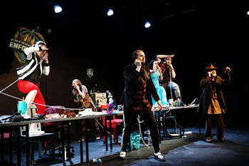 Here, a comical band of superheroes, The Enforcers, must work the phones to raise money for a new staging of the tale of Prospero, the banished duke of Milan, who finally gets his revenge. This production of The Tempest would come as a sort of "victory lap" after the Enforcers have subdued their arch-enemy Professor Cannibal and saved Fathom Town from enslavement yet again. But, like the 1999 movie Mystery Men, the Enforcers' super powers are seemingly not very formidable. But they're pivotal in the transformation soon to come. Midnight Company founder Joe Hanrahan plays The Untangler, an irascible father figure whose mesmerizing rope knots will confound any adversary. And director Cashion's frequent collaborator Will Bonfiglio plays the superheroes' leader, Ariel. But he and The Untangler are rendered powerless as they ring-up a series of skeptical backers. Crucially, Mr. Hanrahan will gradually morph into Shakespeare's wretched Caliban; and Mr. Bonfiglio, into the Ariel of The Tempest. And everything will start looking up, from down in their undersea lair, a forgotten submarine. On the night I attended, Morgan Schindler was adorably funny stepping into the role of The Bad Map, a superhero who can barely navigate her own apartment without running afoul of the cat. (The Bad Map is normally played by Kayla Bush.) The whole cast's strange journey, from an amalgam of desperate fundraisers in a darkened boiler-room setting, and into mighty legends, is fresh and touching and very satisfying. Starting out like embittered Gen Xers, or anguished but exceedingly well-mannered Millennials, the faces of this band of heroes begin to glow with idealistic fervor as the play develops its furious momentum. A strange choreography takes over, as telephone handsets are uniformly dropped to the floor again and again to signify phone connections lost at the depths of the ocean. Coiled cords get caught up in top-knots. And go-cups and post-it notes and loose papers flutter into chaos, as each pitch-master seems on the verge of closing a deal. Comic soliloquies are interrupted (but never tripped up) by a lot of earnest cross-talk, serving to burnish their superhero legends. The tangled stories race toward completion in the final 30 minutes, as the show blossoms with strength and romance in a kind of rising personal majesty. Miranda Jagels Felix presents a thrilling rush of emotions as the shadow-puppet mistress, The Silhouette, and Rachel Tibbetts is incandescent as Memory Lass, whose powers of recall sadly do not include any particular individual. Cassidy Flynn is comedically perfect as The Tune, whose musical abilities no longer interest him. Alicen Moser is electric as The Page, and also as Shakespeare's Prospero in the final scenes. Celeste Gardner has a wonderful oddball presence, sincere and improbable, as Fragrance Fellow. And Ross Rubright and Spencer Lawton are unexpectedly heartwarming as The Pleaser and The Intoxicator. I must confess that I was getting over a bad head cold this particular night, and a couple of times during the show I briefly felt as though I were trapped inside a steel drum with maniacs banging on the outside of it with hammers. But the overall effect is very positive, and Ash Arora is exotic and languid and irresistible as The Ocean. Joey Taylor provides outstanding keyboard accompaniment throughout, and also plays a funny (but not-so-competent) stage carpenter in their woven-in telling of The Tempest. Every step of the way, the whole thing seems to be coming apart, and the nightmare of theatrical shipwreck exists at every level–until the cast is swallowed up by an even greater leviathan: the indescribable joy of performance. Spirits to Enforce runs through May 18, 2024, at the Kranzberg Arts Center, 501 N. Grand Blvd., St. Louis MO. For tickets and more information, please visit www.midnightcompany.com. Cast (Secret Identity/Superhero Identity/Character in The Tempest): Production Staff: |