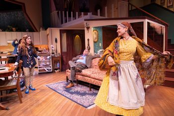 A light comedy based on family squabbling, Feast of Tsuris has not been staged very often, or at all since 1978, to my knowledge. Ms. Kaplan's We All Fall Down will be celebrated here for a strikingly fine cast, which manages to add a ring of truth to a lot of light comedy based on family squabbling. This staging will also be remembered for its heavy reliance on humorous hats and sight-gag dresses, provided by the respected costumer Michele Friedman Siler. And for a set that seems far more ambitious than the play itself, by Andrea Ball. But there's actually a shockingly good reason to stage We All Fall Down right now, though it may be hard to sift out. The eager-to-please show's buried premise, of rediscovering one's faith, gives us a sense of relief from today's troubling world news, in spite of a landfill of easy laughs. And "boy do we need it now," as they used to say about the 1974 film, That's Entertainment, after the grueling crises of Vietnam and Watergate. The rediscovery of faith, I mean. The current war in the Middle East has provoked at least some of my friends to worry and fear for their identity, and for the fate of the Jewish homeland itself. In We All Fall Down, Linda (the mother, played by the commanding Mindy Shaw) has a sudden urge to reclaim her own spiritual side during Passover, for reasons that will remain baffling until the very end of the play. But if you can just set aside your drama critic impatience for about 100 minutes, it may still be a perfect show for grown-up Jewish families who are questioning their role in the world today. When we finally ascertain the point of all the groan-worthy costumes and the very nearly amusing Passover ceremony, we can stop rolling our eyes at the steady barrage of sitcom moments–as when Linda dons a costume from her daughter's childhood production of Fiddler to stage a Passover remembrance, a seder. Her family is every bit as uneasy as I was, after Linda's lifetime of agnosticism, or even atheism. Even so, in a roundabout way, the theme of a very awkward spiritual reclamation is the one structural thing that may make this show memorable. It's perfectly fine from a performance standpoint: Alan Knoll is terrific as Saul, the father, who's suddenly retired (for reasons that are also hard to fathom). Their two daughters (played by the accomplished young actresses Bridgette Bassa and Hailey Medrano) are intermittently life-like, as is their aunt, played by Jenni Ryan, though they're all bound by the constraints of this style of comedy. Somebody please give Bridgette Bassa a really good role–she's earned it lately. On top of all that, actress Bethany Barr makes everyone else look sketchy. She's great as the hapless, good-hearted neighbor who has moved away but come back up on the train to Long Island for this solemn holiday event. Her character has the most developed, sustained vulnerability on stage–and in theatre, vulnerability is often the greatest strength. (In that sense, theatre and religion are once again unlikely twins.) In the end, I suppose everyone on stage gets at least a very brief dose of that same humbling magic. In spite of the show's waka-waka tone, Taijha Silas is disarmingly fresh and clear as Ester, Linda's assistant who tries to arrange a TV appearance in conjunction with the publication of Linda's new book, "Raising Difficult Children." And Ms. Silas gets a beautiful singing solo halfway through. But We All Fall Down is a grueling test for them all, to make it into something memorable. In more ways than one. We All Fall Down runs through June 16, 2024, at The New Jewish Theatre, Wool Center, #2 Millstone Campus Drive, St. Louis MO For tickets and more information, please visit newjewishtheatre.org. Cast: Production Staff Additional Credits: * Denotes Member, Actors' Equity Association |