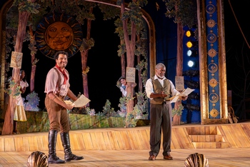 Four hundred years after William Shakespeare's time, watching his As You Like It at the St. Louis Shakespeare Festival is like putting on a new pair of corrective eyeglasses for the very first time. The heart sees afresh, thanks to a sharp new production of this comically misguided love story in Forest Park, under the easy-to-follow direction of Nancy Bell. Of course you can just sit back and enjoy it, for two and a half hours. Three and a half, in my case, including an hour-long rain delay before the show. But, "sweet are the uses of adversity," as the duchess (the always-excellent Michelle Hand) says, after being banished into the forest of Arden along with her ladies. And sweet is this production, perhaps even more so after the adversity of the rain: the air was clear, the bugs gone (they're always up around the stage lighting towers, but not common outdoors here), and the show is a sparkling riot of nonsense–all in the name of love on its own ornate storybook set designed by Scott C. Neale, which is revealed halfway into Act One. There's also warm, twangy folk music, written (and performed live on stage) by Beth Bombara, backed up by her accompanists, to bolster a mood that's both rueful and gregarious. But if you can focus on the language, even just now and then, you realize that Shakespeare was trying to tell us all the basic things that love could be, and should be. And must be, to survive. The play focuses on one of the banished ladies, Rosalind (spiffy Caroline Amos), who later plays the roguish Ganymede, herself. She's thrown together with Orlando (smoldering Christian Thompson) but wants to get a better sense of him by donning a masculine disguise before they embark upon a relationship. I mean, Shakespeare probably is not endorsing stalking, exactly ... Much later, in the final scenes, Rosalind choreographs a huge, multi-couple wedding, like a clever card trick or a Broadway musical dance number. At least, that's the way it plays out in my mind, with some degree of amazement. They don't actually sing and dance. She's first smitten with Orlando after seeing him in a sort of WWF smack-down, where he's pitted against the giant Lenny Mephisto as Charles. Their visceral, knock-down, drag-out fight scene is choreographed by Rachel Flesher, with help from Mr. Mephisto and from Greg Cuellar, the show's fight captain, who also plays Orlando's corrupt brother Oliver. (A deadly conspiracy before the combat further tarnishes Oliver's reputation.) Joel Moses is great as the wicked duke, who triggers all the action. It's so weird, though, because nobody on stage is looking at a cell phone the whole time. People actually have to deal with each other face to face. If you can imagine. It's not that they're all as smart as Shakespeare. But they bash their reasoning skills together to come to some kind of understanding, and no grudge is left to fester. Jasmine Cheri Rush is delightful as Rosalind's pal Celia; and Wali Jamal (as Jaques) got a nice round of applause for his "All the world's a stage" speech. Ricki Franklin is very funny as Touchstone the fool, showing a great control of her share of the comedy. Bianca Sanborn gives us an artfully dimwitted character (Audrey), but also lots of comical dancing and poses in Act Two (the choreography is by Sam Gaitsch). She's one of the farm girls who populate the stage. And Molly Wennstrom is perfect as another milkmaid, Phoebe, full of presumptions and ideals and declarations. CB Brown is very good as her lovelorn shadow, Silvius; and Kathryn A. Bentley easily makes sense of the 400 year-old dialog (primarily) as Corin, another shepherd. Joneal Joplin is touching as Adam, Orlando's aged servant. And Isaiah Henry brings simple, genuine warmth to the surrounding, aphrodisiacal landscape, as William. One of the "sweet uses of adversity" during the rain delay came when the gentleman next to me put forth the idea that Shakespeare's plays are meant to be seen as a series of magical, reflective little moments–contrary to our very pace-conscious, linear understanding of plot today. But this show works on both tracks, in parallel: the magical, romantic old moments are there; and the straight-ahead, funny new ones, too. If you take a minute and get reservations, at no charge, you can bring a bottle of wine, and a blanket to sit on, down front or around the rows of plastic chairs in the middle of the glen. But if you reserve a spot on the lawn, you can bring your dog. Or even your kids! Or pay for chairs to sit on during the show. There's a hot dog stand up by the east parking lot, offering St. Louis or Chicago style dawgs, which features a vegetarian option. It was beautiful out after the rain this particular night. But even on the hottest evenings, it frequently turns very chilly after dark, especially down front, with the big reflecting pool and a Forest Park lagoon spreading out around Shakespeare Glen, below the St. Louis Art Museum. "Bring a wrap!" as the late sportscaster Mike Shannon used to say, to help stay warm. As You Like It runs through June 23, 2024, at St. Louis Shakespeare Festival, Shakespeare Glen, 6604 Fine Arts Dr, St. Louis, MO. For seat tickets or lawn reservations, and more information, please visit www.stlshakes.org. Cast (alphabetically): Musicians: Production Staff: * Denotes Member, Actors' Equity Association Additional Production Staff: ** Denotes Member, USA Local 820, IATSE *** Denotes Member, IATSE Local #6 |