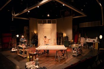 But with Rothko, they're never exactly the same kind of red. Only the artist himself could tell you what makes one tint or hue different from another. And for him, in this 90-minute play written by John Logan, immaculately directed by Alan Knoll, there was an entire spectrum of color within that spectral neighborhood alone: on the fringes, a "red" that can be murderous, or death-defying. The play first opened in 2009 at the Donmar Warehouse in London. Three months later it transferred to Broadway, where it won six Tony Awards, including Best Play. It's a perfect show now at the Jewish Community Center in Creve Couer, with a director who consistently, strategically ennobles the actors; and actors who realistically ennoble the playwright. And, though it's esoteric, they actually talk about something that matters. We are led through the struggle to perfect an imperfect mind, in ways that are as varied as the paint cans stacked all around the New York City studio at the end of the Eisenhower years. Christopher Harris plays the great artist: a jealous mensch, which is funny in itself, though the artist defies comedy (which is even more comical, on a higher plane). Bridling at the modern world's addiction to sweetness and light, he fights for his work incessantly, trying to locate himself on a spectrum among all the other great twentieth century artists. Those include his self-destructive nemesis Jackson Pollack and earlier greats like Pablo Picasso and Henri Matisse. He accuses Picasso of being obsessed with money, but demands a receipt from his gofer for the simplest bag of Chinese carry-out. He puts himself far above the emerging artists like Stella, Warhol, or de Kooning, for riding the zeitgeist, instead of reinventing it. And struggles for supremacy in their shared reality, where everything's a game of color and space. But in the very first scene, we learn he has jeopardized his place in the artistic firmament, as a titan of postwar American art: to become a sideshow for Philip Johnson, the architect. Through Johnson, Rothko has accepted a commission to turn the glitzy Four Seasons restaurant, in the new Seagram Building, into a gallery of his own work. And we can see he has begun to worry that "his" color has taken on the shade of a "marked for clearance" sign. Dustin Lane Petrillo is Ken, his new assistant, a sounding board for everything that's wrong with the art world circa 1958-59. He's bright and charming, and both innocent and complicated in his own way. The production works so well because the two actors contrast on multiple levels, though both are painters here. The deeply evocative murals, and a set that seems viciously spare (but would take pages to describe), are by our premiere designers, Margery and Peter Spack. Rothko courts the muse with song and spirit, and the invocation of great painters and authors. But when inspiration finally, palpably hits, an off-handed remark is all it takes to trigger a rage over the lost moment of evanescence. We lean in, right before Mr. Harris' hard emotional pivot (over "red," of course) to gain dizzying insight into his painstaking rain dance for creativity, right before it's suddenly knocked off kilter. Which, I suppose, is funny in a whole different way. Mr. Petrillo is every bit as expressive and kindly as Mr. Harris is enigmatic and brusque. And in a hair-raising scene of startling clarity, Ken tells a story of a family tragedy that has inspired his own series of unexpected paintings. Through it all, the canvases take on a compelling life, wriggling themselves into being, whether in dream-like twilight or the cross-currents of shadow (by "shadow" designer, we might say, Jayson M. Lawshee). And we see life being imputed into canvas as the two men lay down a primer coat of the artist's signature color. It's pure movement, growing synchronized in spite of their differences. Rothko's internal universe of doubt, and his own version of a "lust for life," wrestles and writhes onto a flatter reality, as snapshots of unspeakable passion. The show itself, with a faultless alignment of direction and performance, is a silky smooth gallery of defining moments. We linger in awe, and sometimes sadness, over the fury of it all. Red runs through August 11, 2024, at the Jewish Community Center, #2 Millstone Campus Drive, St. Louis. For tickets and information, please visit www.newjewishtheatre.org. Cast: Production Staff: Additional Production Staff: * Denotes Member, Actors' Equity Association |