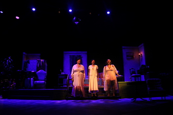 And somehow, theatre like this is almost like an exorcism: holding up the shared trouble of human hearts and then shouting out the pain in song–with rising humor, joy and determination. The stylish, dynamic foursome on stage (backed up by a terrific jazz combo) rips everyday evil spirits to shreds in a quick hundred minutes or so, with intermission. From honky tonk to blues-shouting to darn near gospel, Sheldon Epps' musical is a compilation of songs by Bessie Smith, Harold Arlen, and others. The show opened Off-Broadway in 1980, before its Broadway debut at the Rialto in 1982. It was nominated for a Tony Award for Best Musical the following summer. Set in the Great Depression, late at night in a forgotten old hotel, three women share their torrid heartaches with the assistance of the suave actor J. Samuel Davis. He's excellent as everything from a bemused barkeep to a devilish lover, in a series of sassy song and dances, with smooth and unobtrusive choreography by Heather Beal. Each musical number is beautifully nuanced, with Adrianna Jones as a sort of Mahalia Jackson type, eternal and wise, though she also supplies regular blasts of infectious joy. Her tour de force performance includes "Stompin' At The Savoy," the archetypically raunchy "Rough and Ready Man," and "I Got a Right to Sing the Blues." De-Rance Blaylock almost seems like a wispy Billie Holiday character, with great, contemplative (and even existential) singing in "Lover Man," and "Wasted Life Blues." Each of the on-stage performers gets a sly key change in the midst of their complex treatments of jazz-age ditties, with the help of music director Khalid McGee. And in spite of its title, the show is so persistently buoyant that Ms. Blaylock often veers into a sort of Diana Ross style, as when she shakes it in Bessie Smith's naughty specialty song "Kitchen Man," and "Take Me for a Buggy Ride," with a snapping riding crop as a prop. The excellent costumes are by Gregory J. Horton, with an impressive lighting design by Travis Richardson. Amber Alexandria Rose is adorable, and every bit as sharp playing the youngest of the women, "The Girl." The three ladies regularly form a magical powerhouse trio. But she takes us by surprise with great emotional insight in "Willow Weep For Me" and "Reckless Blues." And Ms. Rose captures a rapturous resolve in "Taking a Chance on Love." But I have to say: I never sat so still in church, in the show's deep moments of reflection, nor raised my hands so much in joy, as in this Blues in the Night. Blues in the Night runs through September 22, 2024, at the Edison Theatre on the campus of Washington University, 6300 Forsyth Blvd., St. Louis MO. For tickets and information, please visit www.theblackrep.org Cast: The Black Rep Band: Production Staff: ** Denotes Member, the Society of Stage Directors and Choreographers, Inc. * Denotes Member, Actors' Equity Association *** Denotes Member of United Scenic Artists, Local USA 829 |