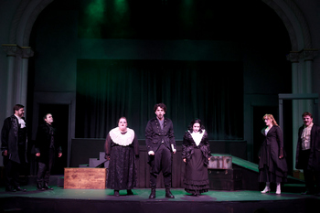 Those destroyers return to grab us by the throat in a thrilling, dark, musicalized version of Poe's own life, which first landed on stage fifteen years ago. It's told in the words and music of Jonathan Christenson in Nevermore: The Imaginary Life and Mysterious Death of Edgar Allan Poe. And it also happens to be the genuinely chilling Halloween offering this month at Stray Dog Theatre. Christenson's two and a half hour, with intermission, musical (which I would not recommend for children) debuted in 2009 at the Catalyst Theatre in Edmonton, Alberta. It was revived at the Barbican Theatre in London before coming to this country in 2015 at New World Stages, a former movie house on the Hell's Kitchen site of the third Madison Square Garden. Nevermore is directed by the exceedingly thorough Justin Been with pitch-perfect longing and horror. Drew Mizell is terrific as the author of "The Raven," "The Tell-Tale Heart," "The Murders in the Rue Morgue," and "The Fall of the House of Usher." And, though "The Raven" is the only one of these highlighted here, Poe was a pioneer of American literature with a childhood fascination for nightmarish imagery in this fictionalized account. He grows up with a yearning for love that was regularly thwarted by fate and by his own inner demons. The story is, nevertheless, lifted up by regular spells of stage magic–and by a driven, onstage ensemble that works even harder than its masterful leading man. Six very high quality actor/singers swirl around Mr. Mizell (who sings in a youthful higher register here) as his Poe goes from orphanhood to public school to the hardscrabble life of a struggling young writer. All along, Nevermore has the energy of a nightmare, furious and inescapable. It's a show that plays for keeps, though there are a dozen moments of beautiful tenderness, interspersed with scenes of thunderous terror. And it will make you glad to be alive in the 21st century, where the age of science seems to have finally outlasted most of the near-mythic cruelties of Poe's own time. Ensemble member Stephen Henley is relentless on stage in a variety of roles, and great as the poet's loving older brother Henry. Dawn Schmid is excellent as some of the author's love interests. An "Addams Family" sense of dark comedy fills the stage when Poe meets Elmira (Sara Rae Womack, a spooky doll-like figure), who's one of the girls he falls in love with. Romance blooms after she gleefully tells him the spine-tingling story of a woman buried alive. Stray Dog newcomers Michael Cox and Heather Fehl add perfect showmanship and antique melodrama without a whiff of fakery to the weird twinges of comedy and the crushing drama. The always-formidable Kevin O'Brien presents an entirely new character as Poe's adopted father, dealing out blessings and shouting out curses with a great Irish brogue: an implacable Brontë-esque Rochester of power and scorn. The mostly monochromatic costumes, 200-year-old hair and make-up styles (and the props, co-created with Mr. Been) were designed by Sarah Gene Dowling, including a great man-sized raven that glowers down from the mist upstage. There's also an occasional shade of red that emerges, as a mycobacterium stalks them all. And the strange, precise minor-key tonalities in the singing are heightened by music director Jennifer Buchheit. Tyler Duenow designed the dream-like light plot. And the foggy, spare set is designed by director Been. It's a Halloween masterpiece. I'm not sure if Poe's particular fate was sealed by the anguished music of his own life story, or by something deeper. Here he has the magical curse to hear it all, like a dark symphony. And his heightened awareness develops into a contagious madness. In any case, the artisans all around this production seem possessed by the same dark, driving spirits. They all become fierce 19th century heroes of the stage. Nevermore: The Imaginary Life and Mysterious Death of Edgar Allan Poe runs through November 2, 2024, at Tower Grove Abbey, 2336 Tennessee Avenue, St. Louis MO. For tickets and information, please visit www.straydogtheatre.org. Cast: Production Staff: |